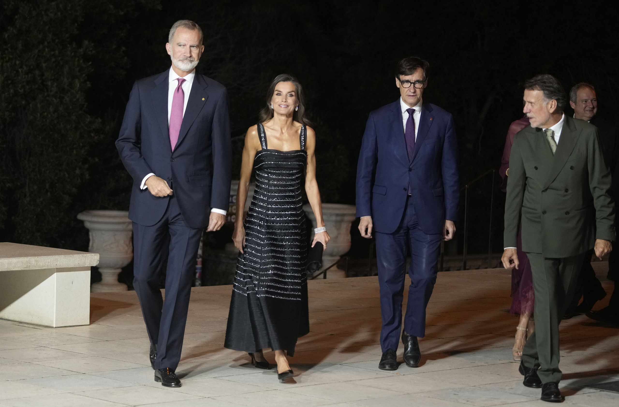 SSMM los Reyes a su llegada al MNAC donde han sido recibidos por el presidente de la Generalidad, Salvador Illa y el rpesidente del Grupo Planeta, José Crehueras