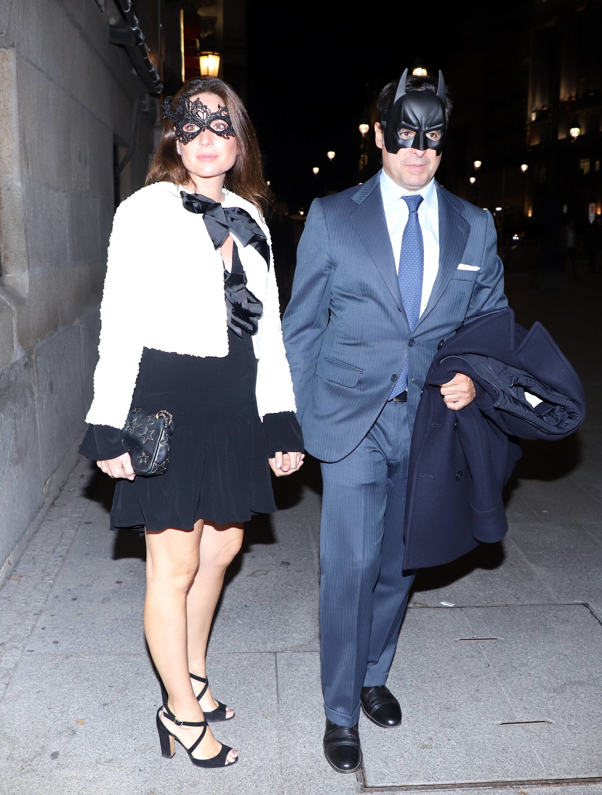 Simoneta Gómez-Acebo, con una máscara, a su llegada a la fiesta de cumpleaños