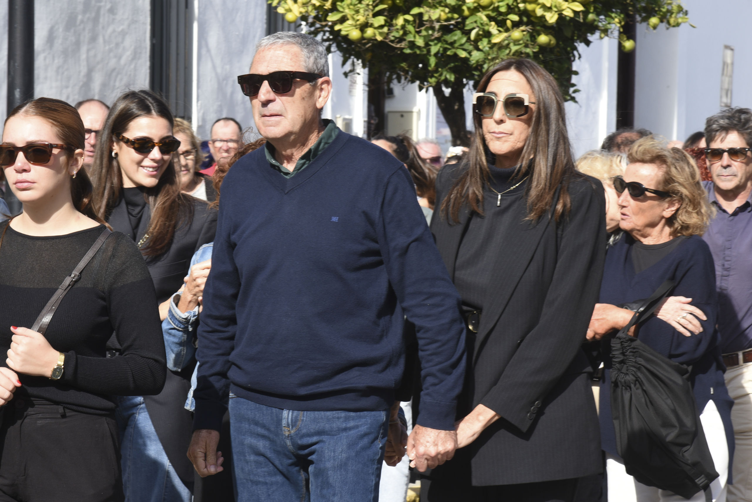 Arropada en todo momento por su hija Anna Ferrer y por una de sus hermanas, Lola, Paz se ha mostrado devastada y ha ocultado su dolor tras unas enormes gafas de sol.