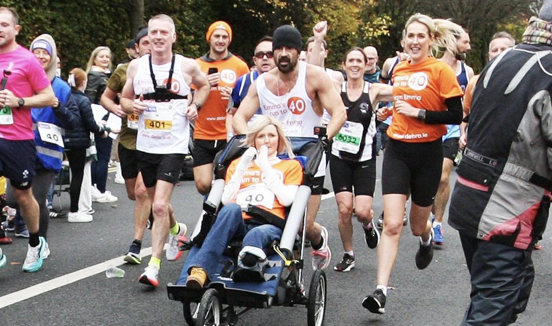 Colin Farrell crossed the Dublin Marathon finish line in just over four hours, pushing his friend Emma Fogarty , who suffers from a rare skin condition called Epidermolysis Bullosa (EB), in a wheelchair for the last 4km of the race.
