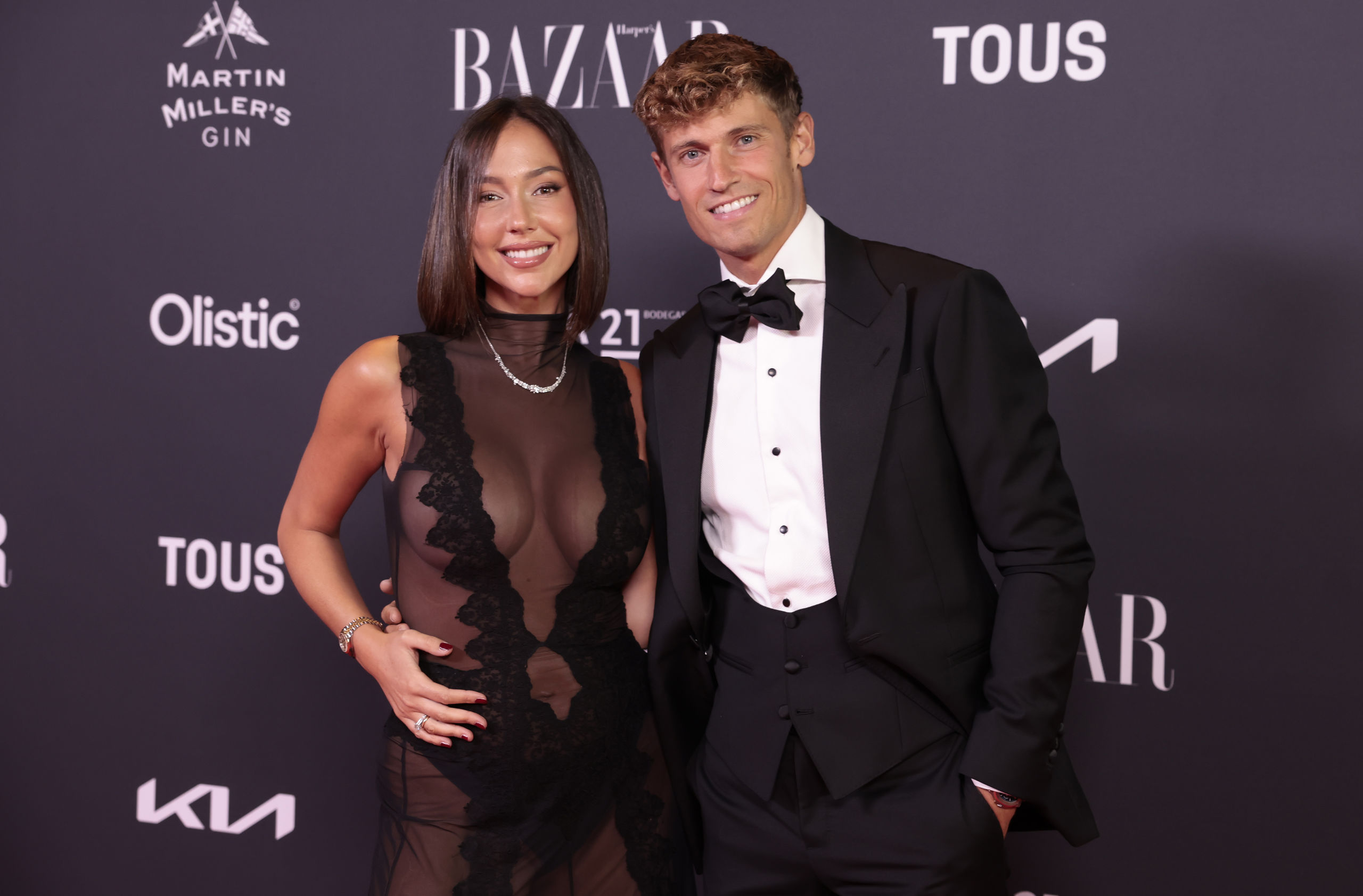 El matrimonio formado por el futbolista Marcos Llorente y Paddy Noarbe, con vestido de Claro Couture