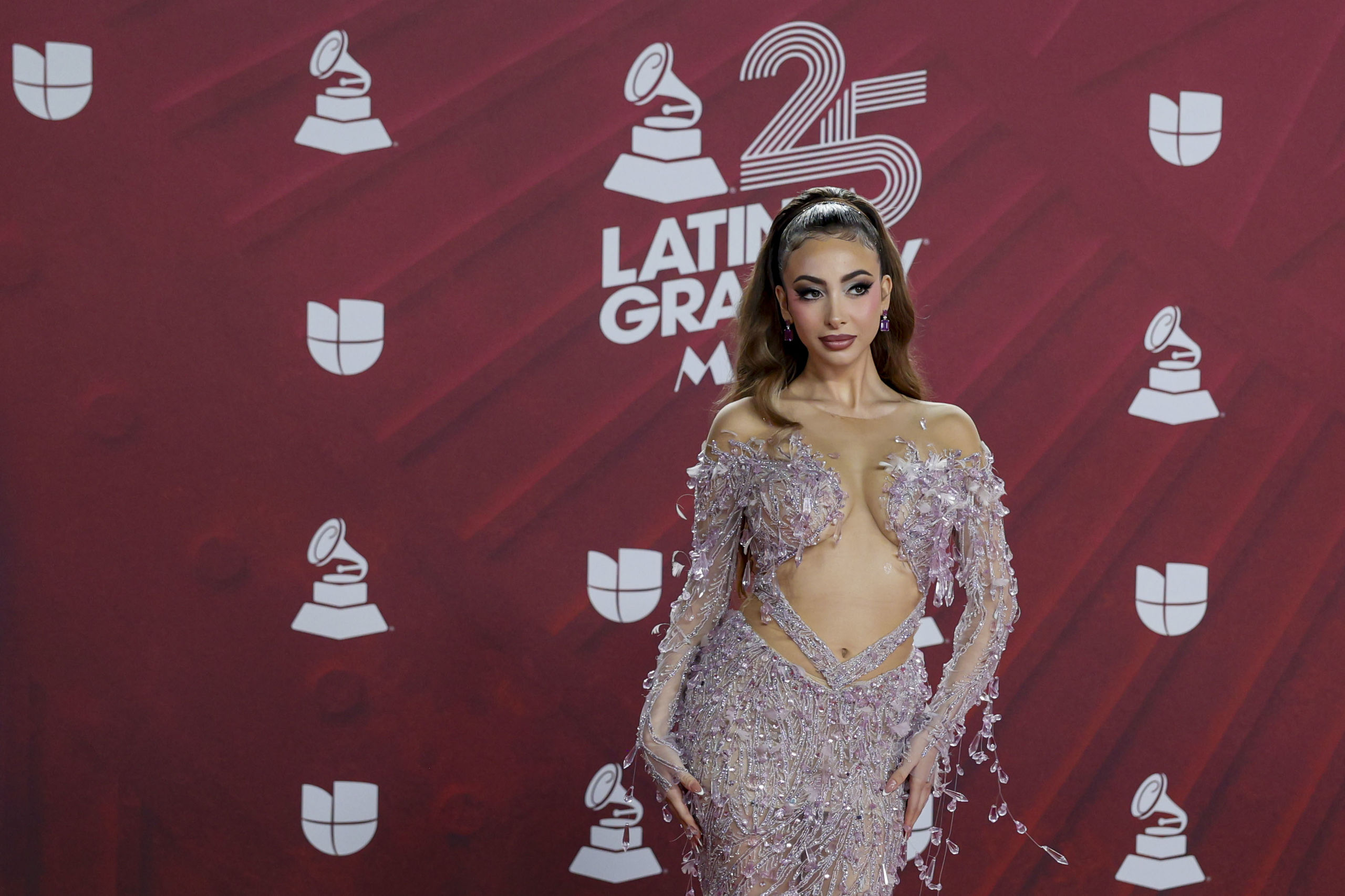 La cantante Vikina en la alfombra roja de los Premios Latin Grammy celebrados en el Kaseya Center de Miami.