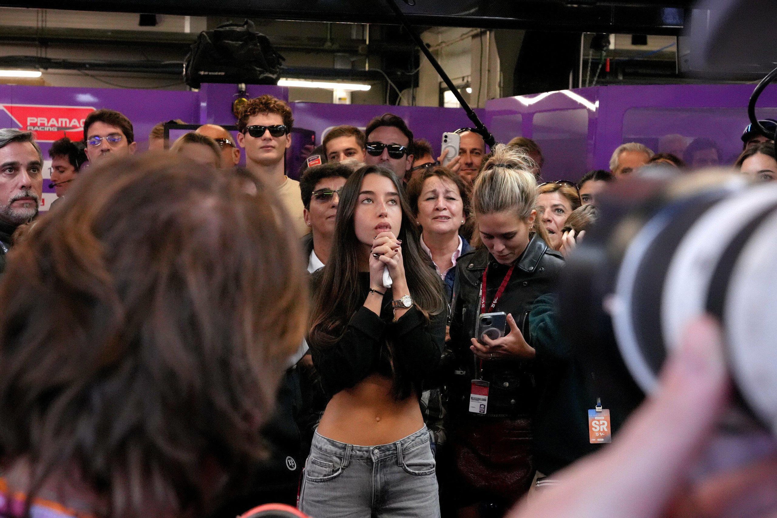 Con los nervios a flor de piel por la emoción del momento, María, que ha estado acompañada en todo momento por su hermana Lydia y su madre Carmen, no podía ocultar su felicidad al ver que su novio conseguía el mundial de MotoGP.