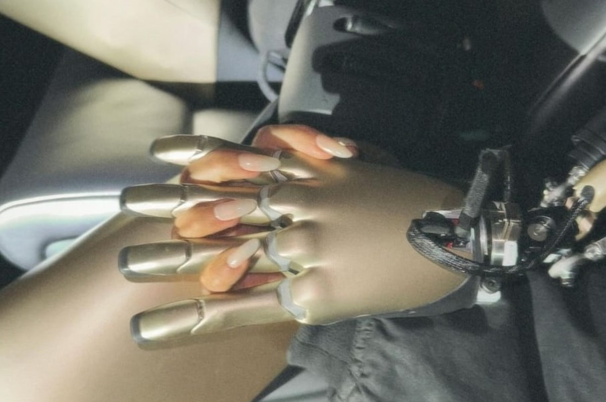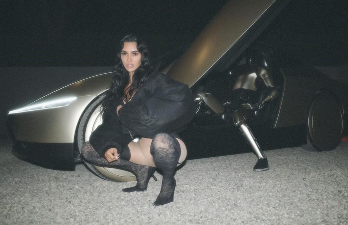 Vestida de la firma Balenciaga, la fundadora de SKIMS posó de diferentes maneras con el robot y un Tesla Cybercab dorado, que aún no ha llegado al mercado.