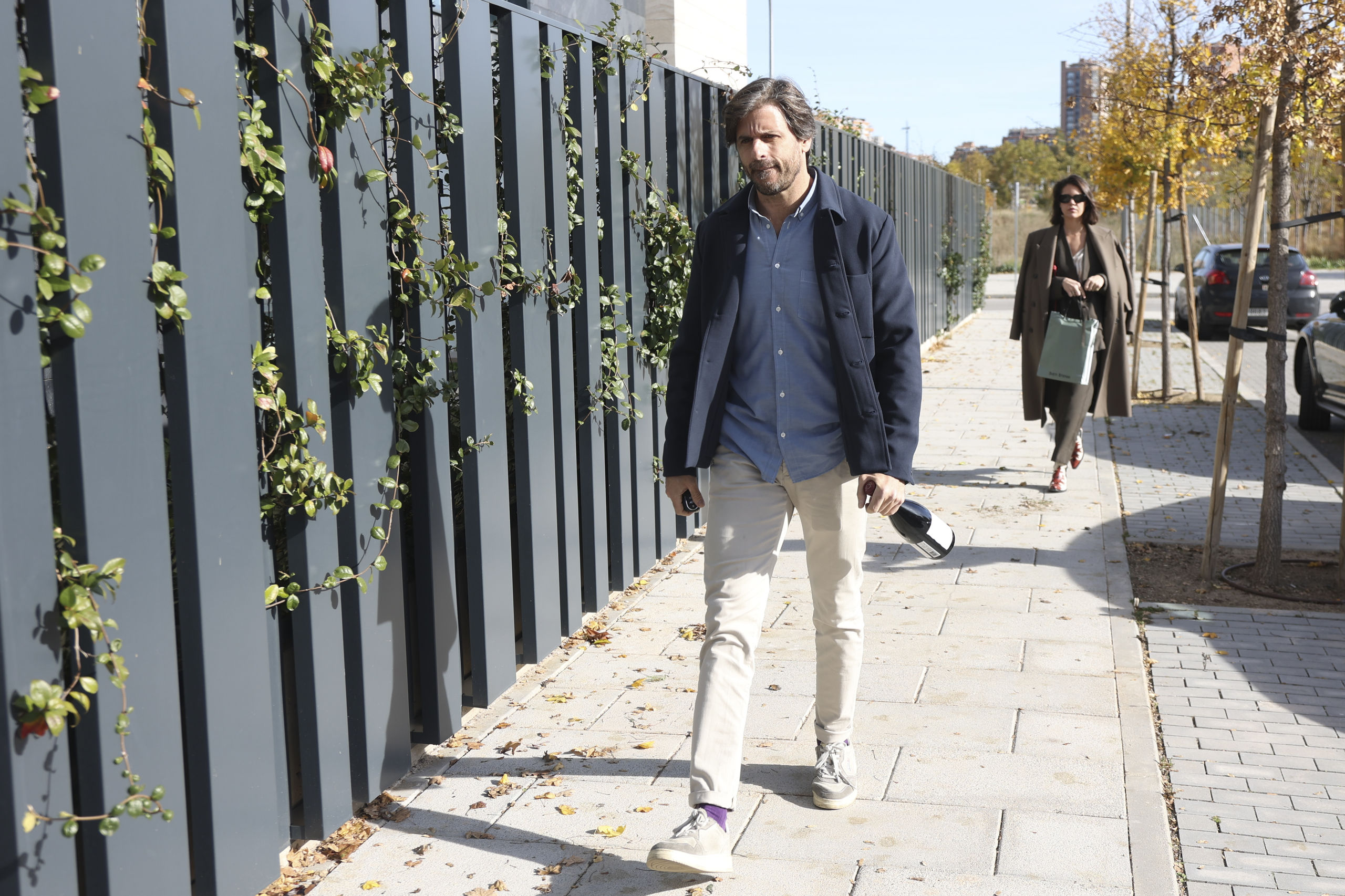 Manolo Falcó a su llegada al domicilio de Tamara, con un regalo en sus manos cuyo contenido no quiso desvelar ante las cámaras.