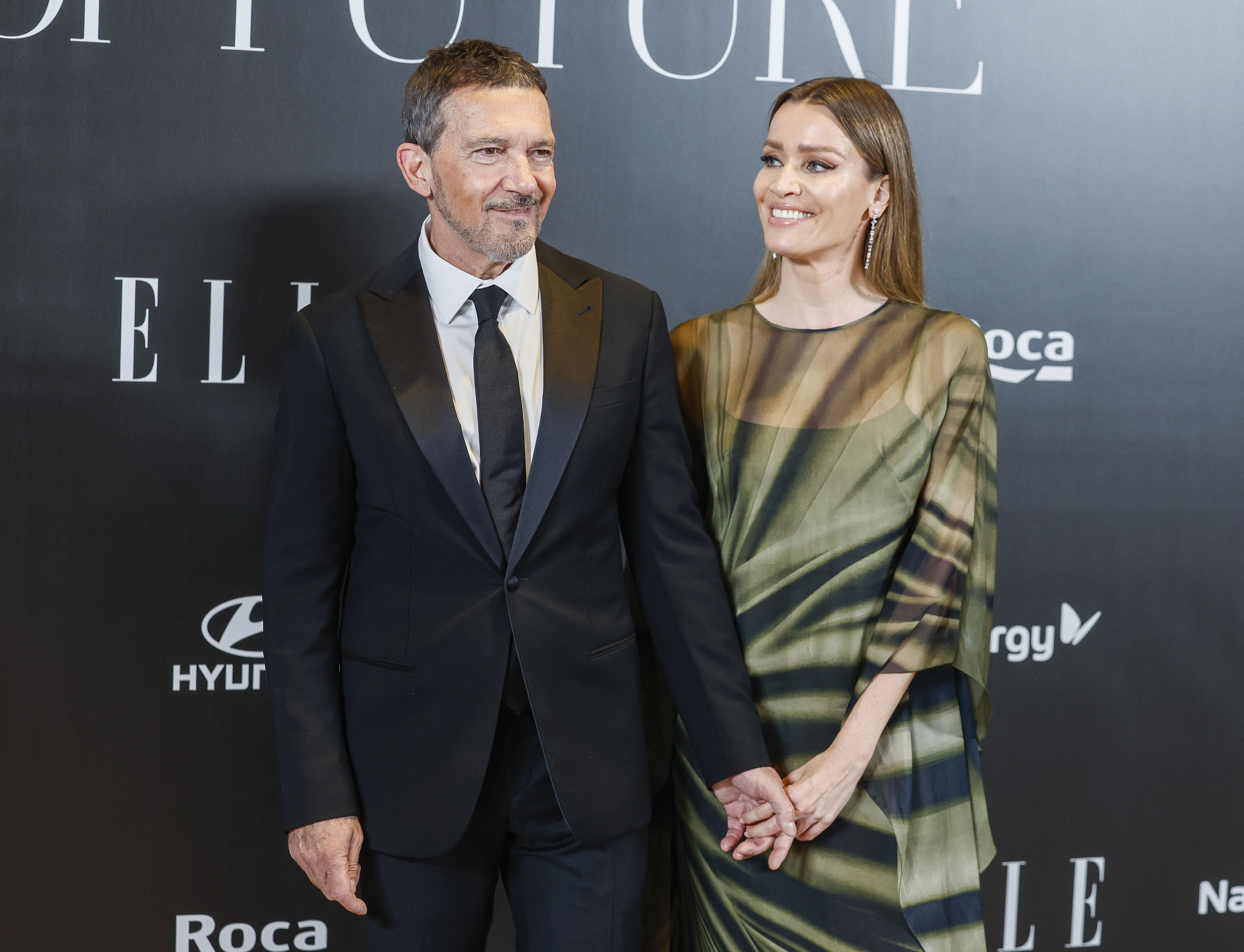 El actor Antonio Banderas con su novia, Nicole Kimpel, que lucia un total look de Alberta Ferretti