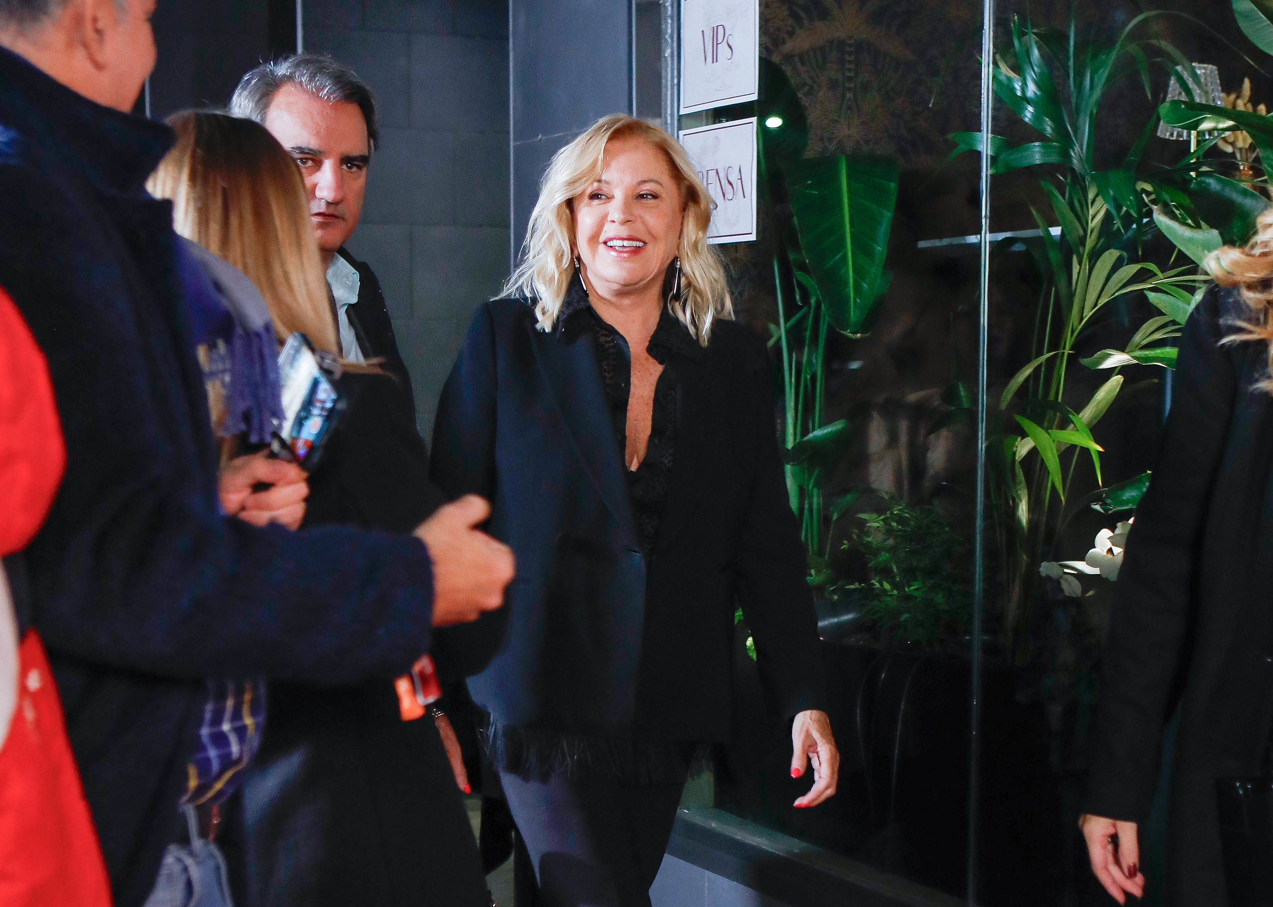 Para una noche tan especial la vedette lució a sus 74 años un traje negro de chaqueta con camisa también oscura semitransparente de lentejuelas y unos stilettos a juego. Un espectacular look con el que demostraba que el tiempo no pasa para ella.