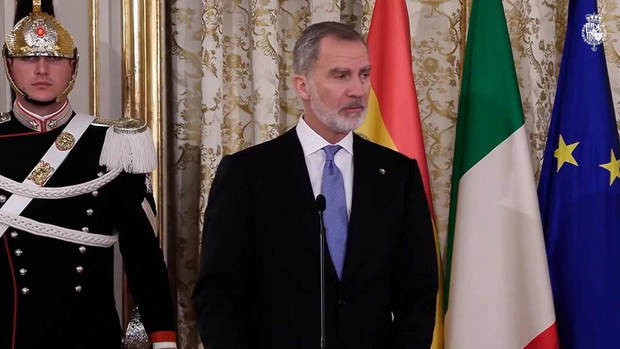 Felipe VI tras el encuentro mantenido en el Palacio del Quirinal con el presidente de la República, Sergio Mattarella, ha explicado que los pilares en los que se apoya la sólida relación entre España e Italia (amistad, cooperación y solidaridad) son "esenciales" para poder trabajar "coordinada e intensamente" en la búsqueda de respuestas conjuntas a los retos y desafíos que ambos países "tenemos planteados a nivel bilateral, europeo y global", ha afirmado.