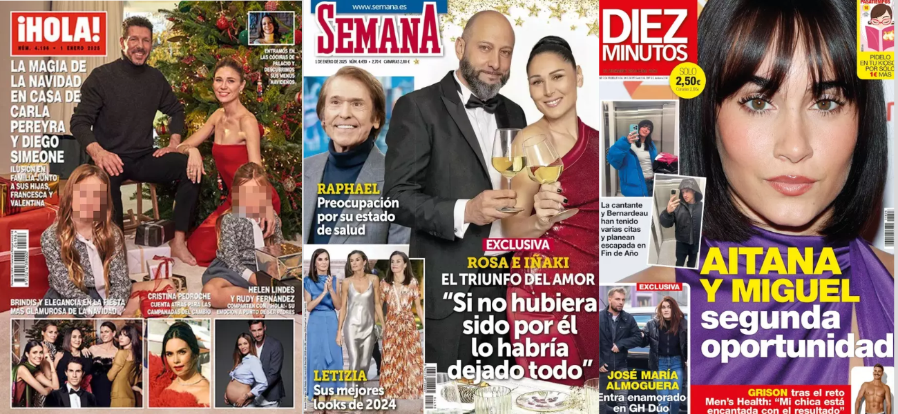 Todas las revistas incluyen en su edición de este lunes alguna referencia al ingreso hospitalario de Raphael la semana pasada después de sufrir un proceso neurológico que está siendo estudiado. El artista permanece ingresado en el Hospital Doce de Octubre, al que se trasladó de manera voluntaria, y su familia está pendiente de él cada minuto. Ojalá pueda recibir el alta y pasar la Nochebuena en casa.