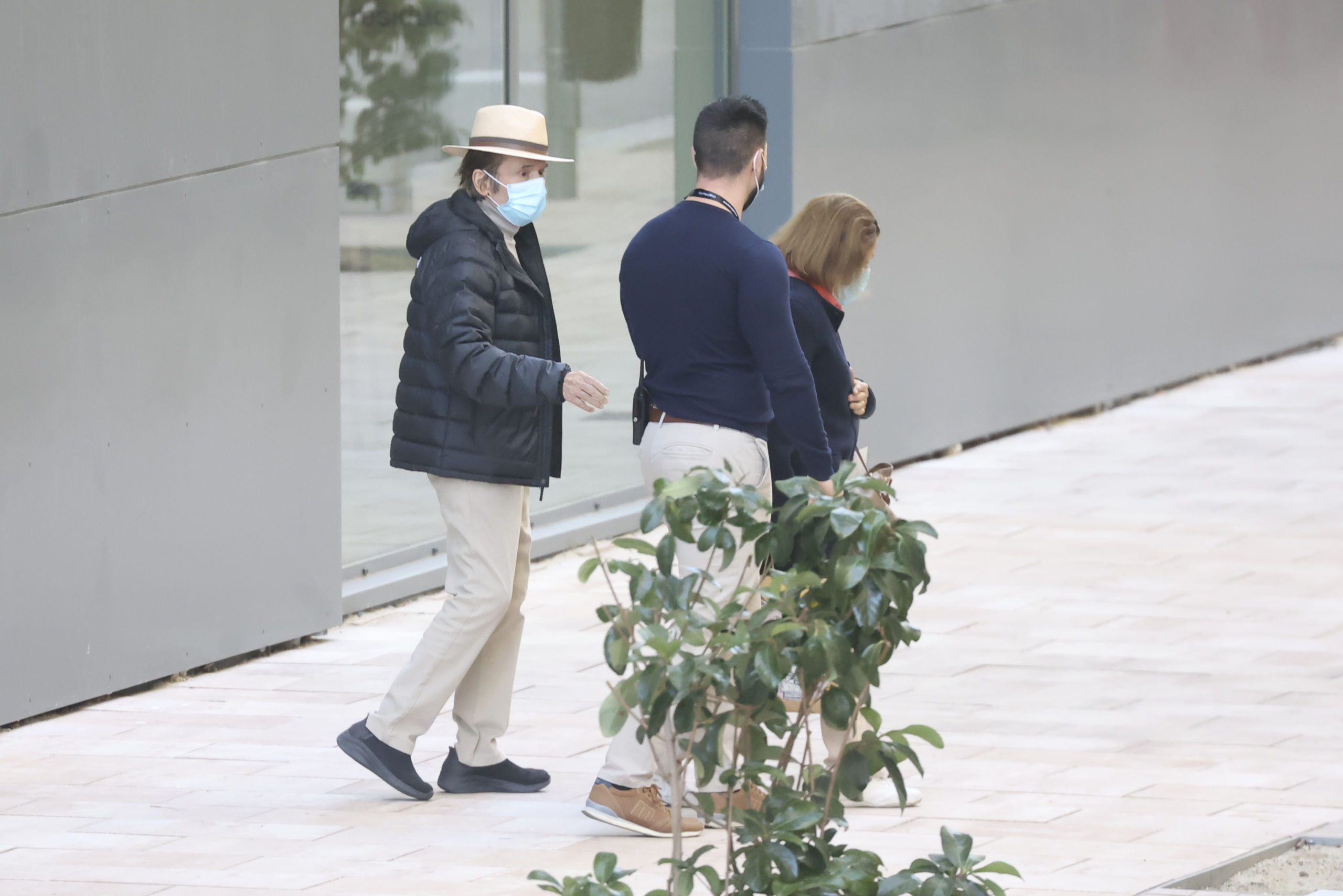 Lo ha hecho por su propio pie a pesar de los diez días de ingreso que le han dejado debilitado, con muy buen aspecto, su inseparable sombrero estilo panameño y una mascarilla quirúrgica -al igual que sus familiares- para protegerse y evitar los virus debido a su enfermedad.