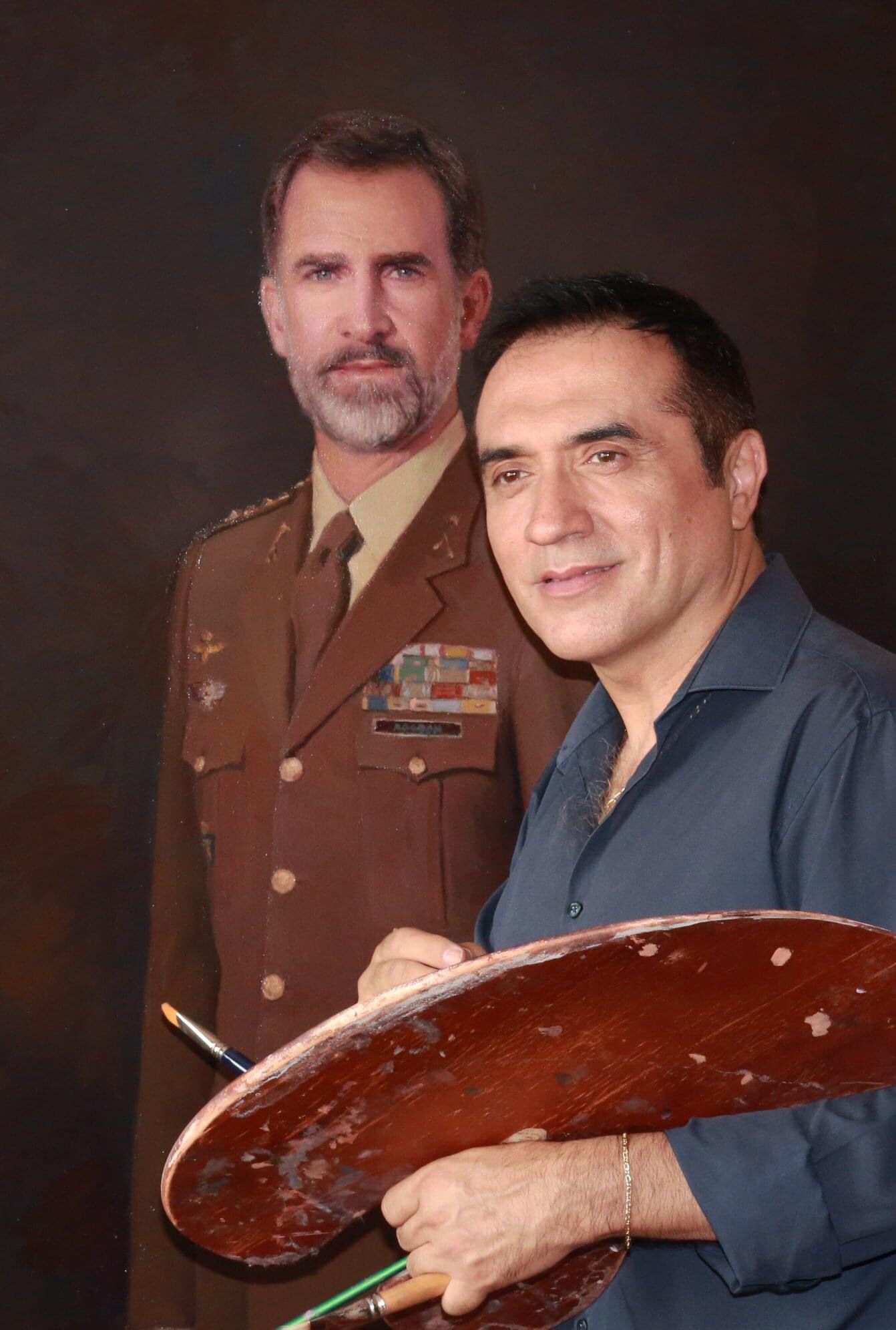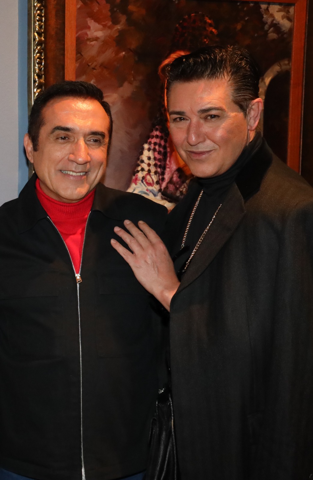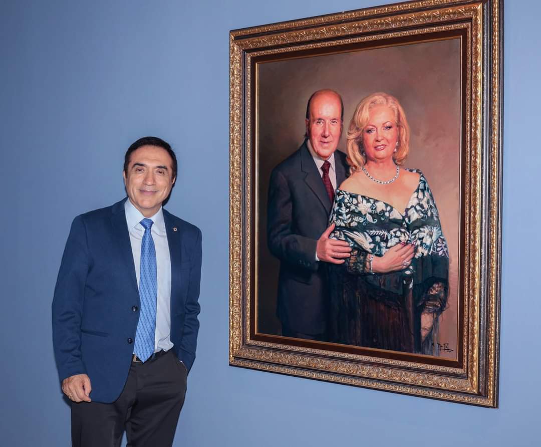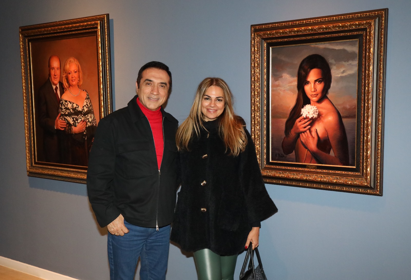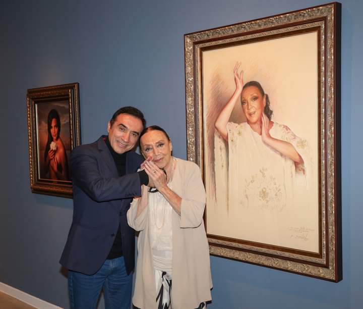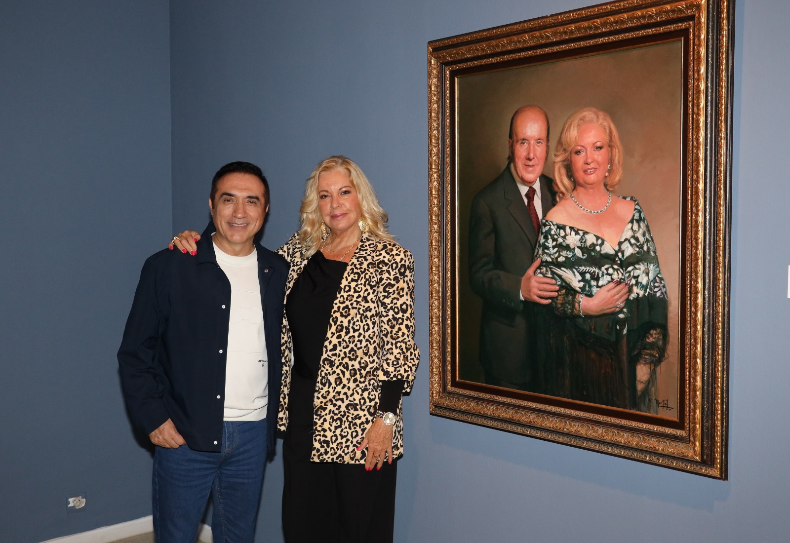 Antonio Montiel junto a Silvia Pantoja, posando junto al retrato de la cantante.