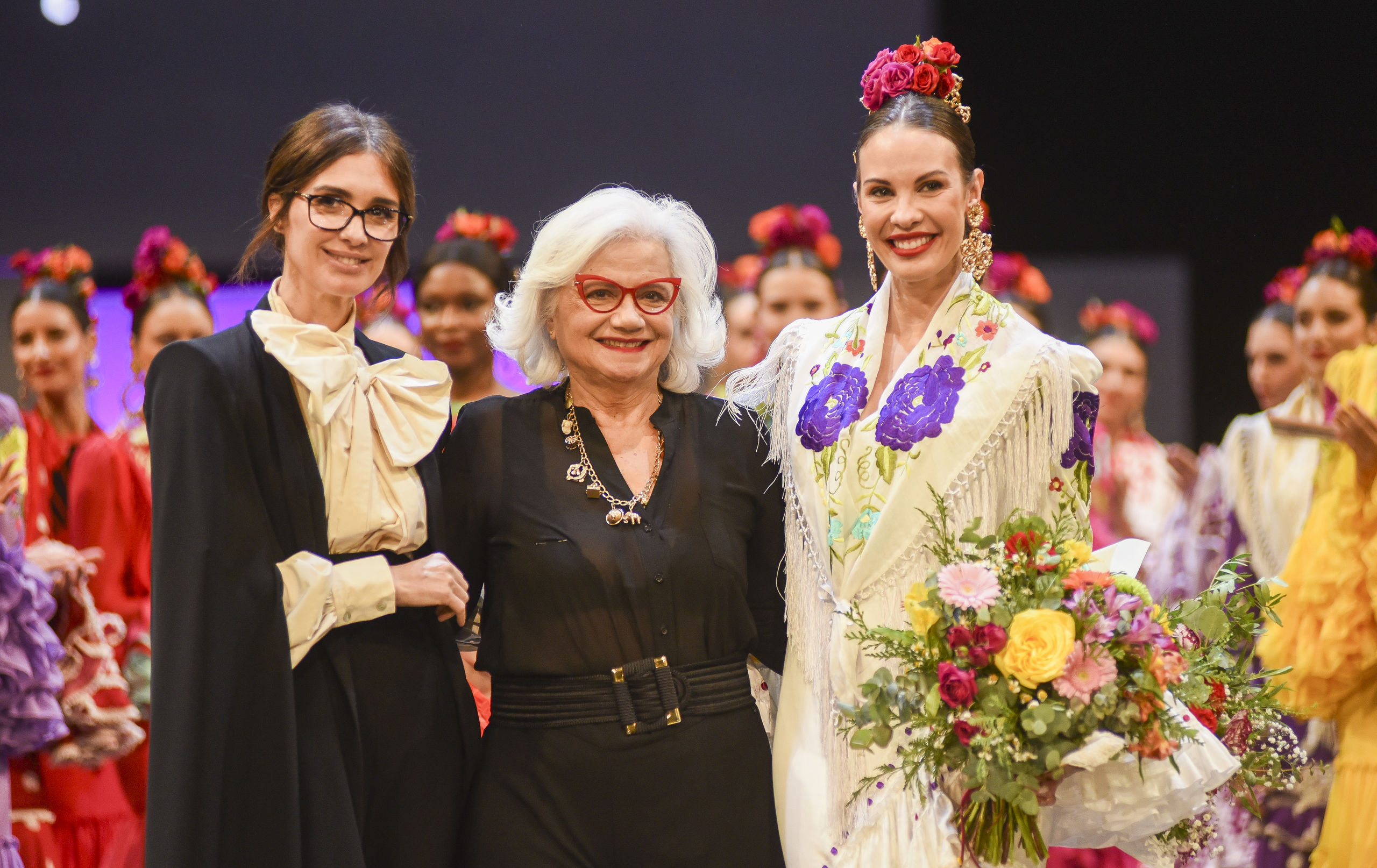 Lourdes Montes, a punto de dar a luz a su tercer hijo, ha presentado su nueva colección de moda flamenca en Simof.
