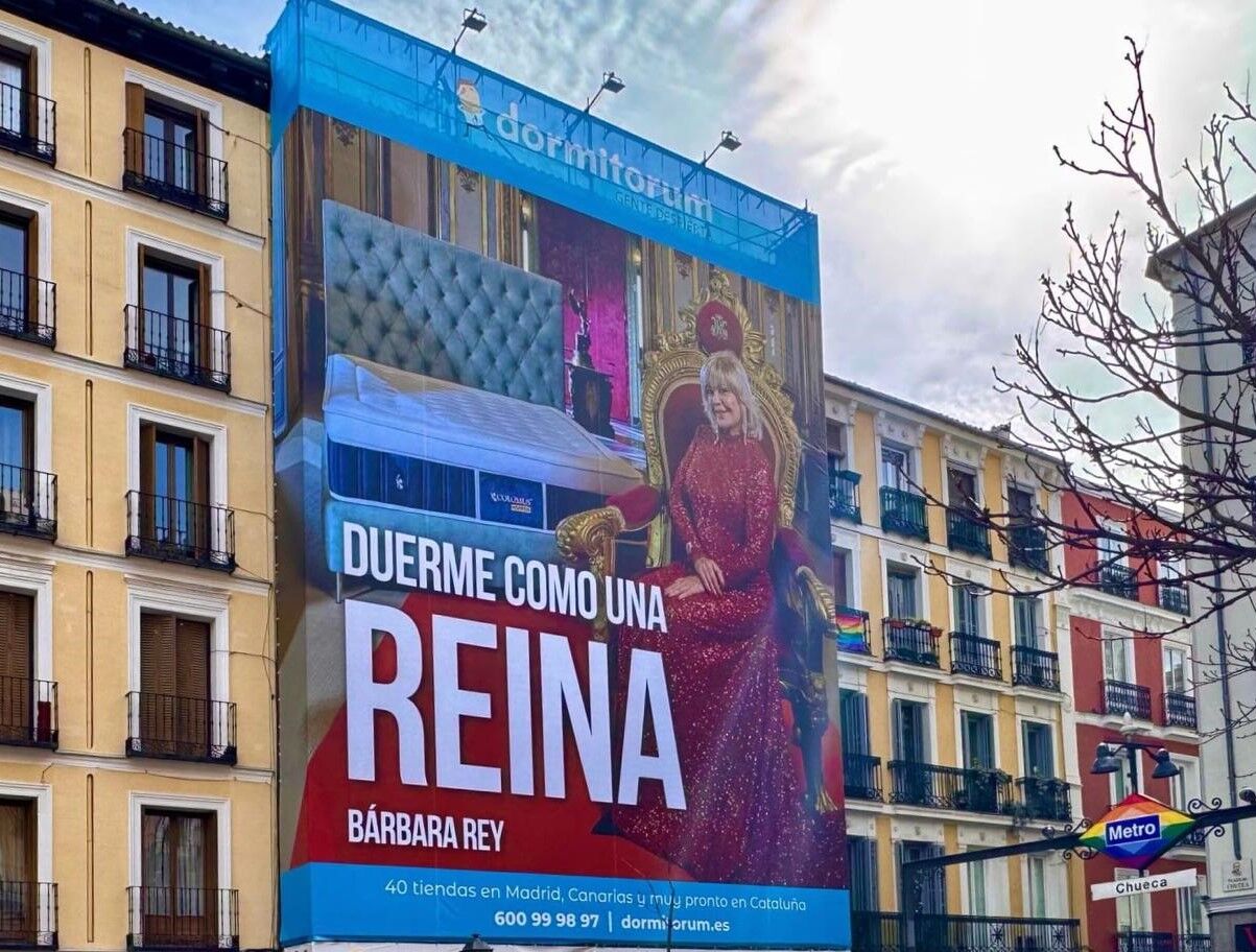 Como parte de la estrategia de comunicación, que ha desarrollado el equipo interno de marketing de la marca, se ha activado una lona publicitaria en la céntrica Plaza de Chueca, en Madrid. La creatividad muestra a una Bárbara Rey, con un vestido rojo, sentada en una silla, con porte regio y elegante junto a uno de los colchones de la marca con la frase: "Duerme como una reina".