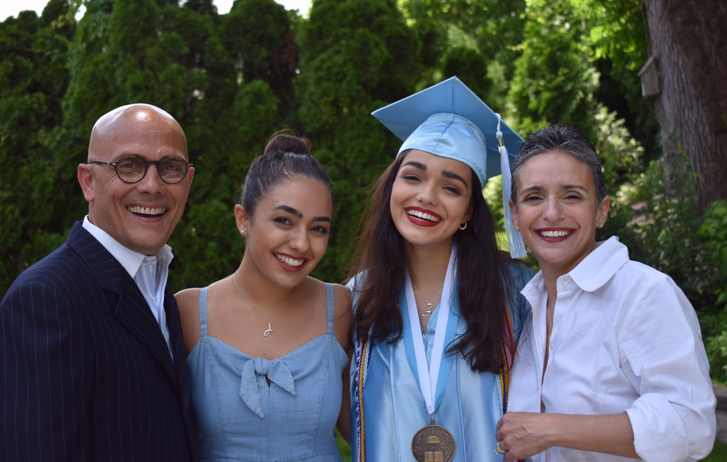 En la foto la vemos junto a sus padres y su hermana el día de su graduación. Está muy unida a ellos a pesar de la distancia que exige su trabajo. Aunque vive en Estados Unidos, su madre y su padre siempre le han transmitido las costumbres de su país de origen. De hecho, en Navidad, siempre cocina en familia plátano frito, como recuerdo a sus raíces colombianas.