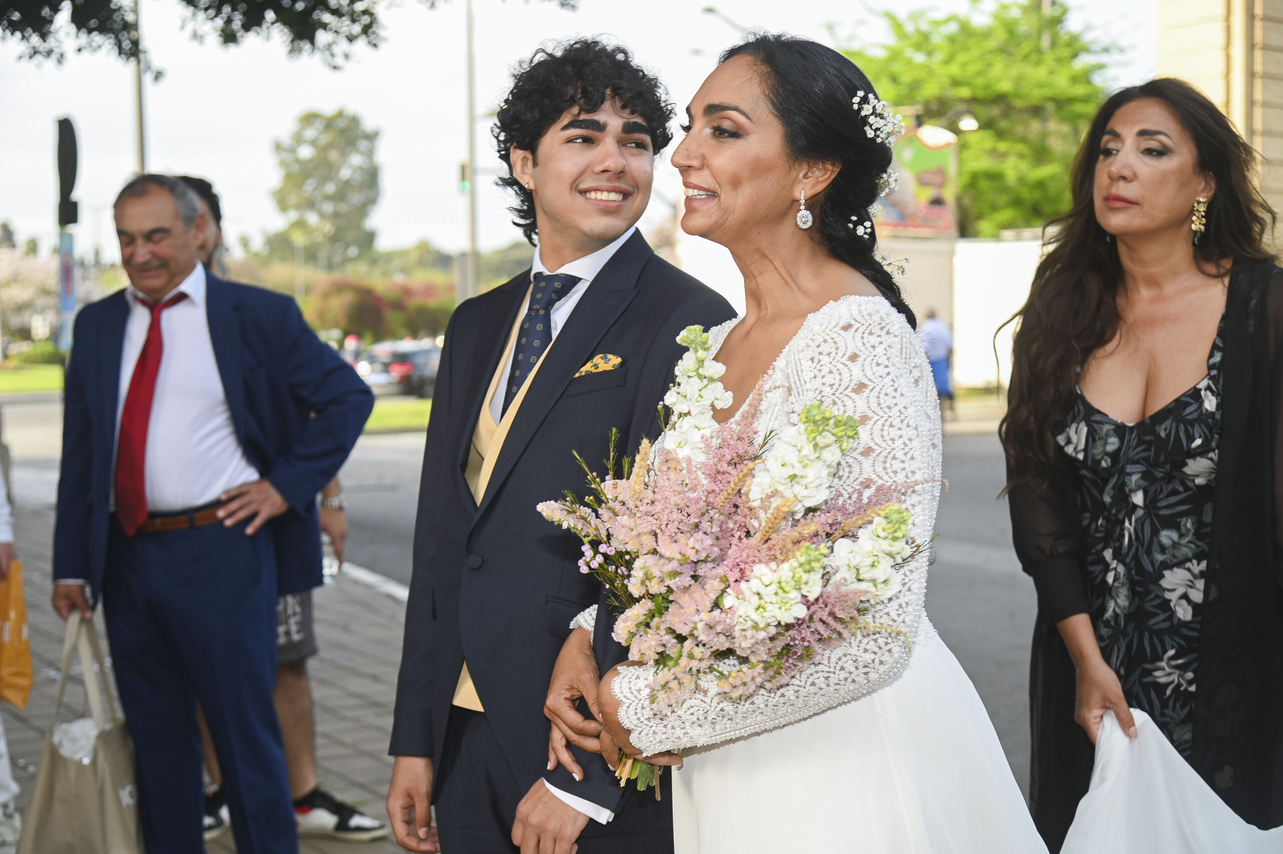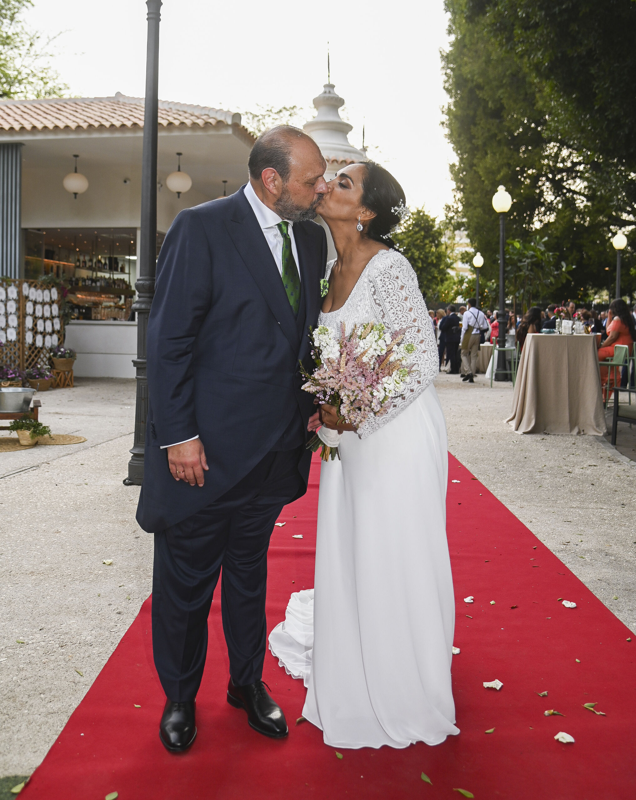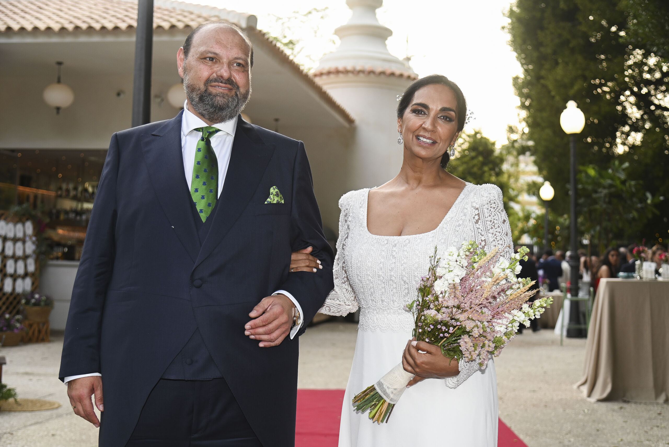 Los novios eligieron el restaurante ubicado en el Parque María Luisa, junto a la Plaza de España, para reunir a casi 300 invitados y sellar su amor. El mismo lugar donde horas antes celebraron su preboda. En la foto, el novio junto a la madrina.