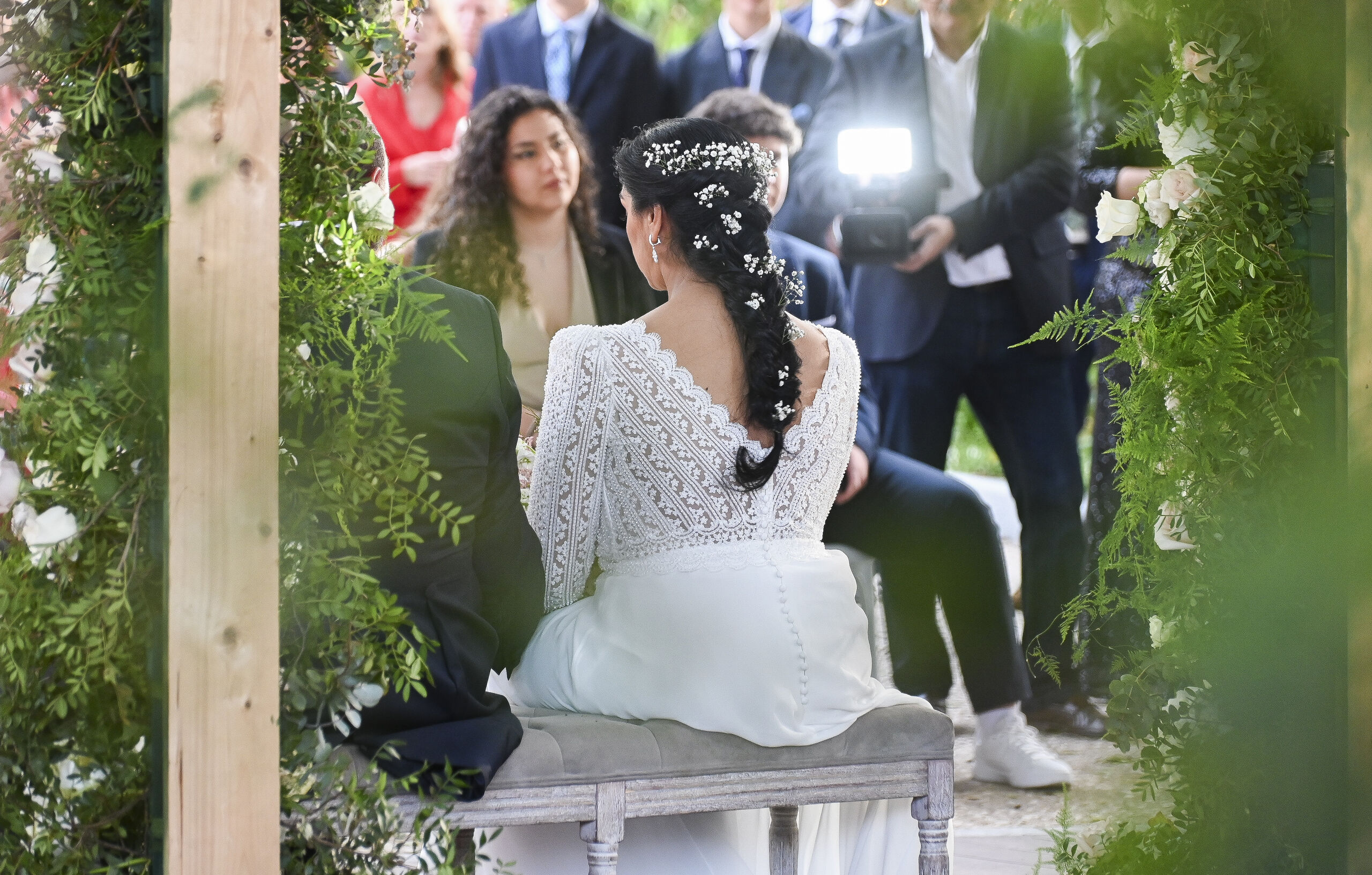 La novia se veía radiante con vestido de manga larga y escote cuadrado, melena recogida en una trenza y un ramo de flores elegante y sencillo. El novio por su parte, optó por el clásico chaqué.