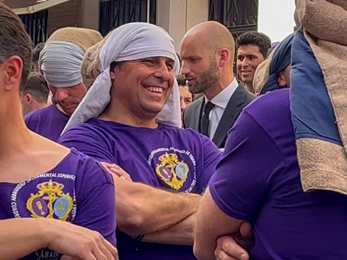 El hijo de Paquirri no pudo disfrutar de la Madrugá sevillana cargando el Cristo de las Tres Caídas junto a sus hermanos, ya que existe una norma que prohíbe a los cofrades de más de 50 años cargar los pasos, con el objetivo de ceder el paso a las nuevas generaciones.