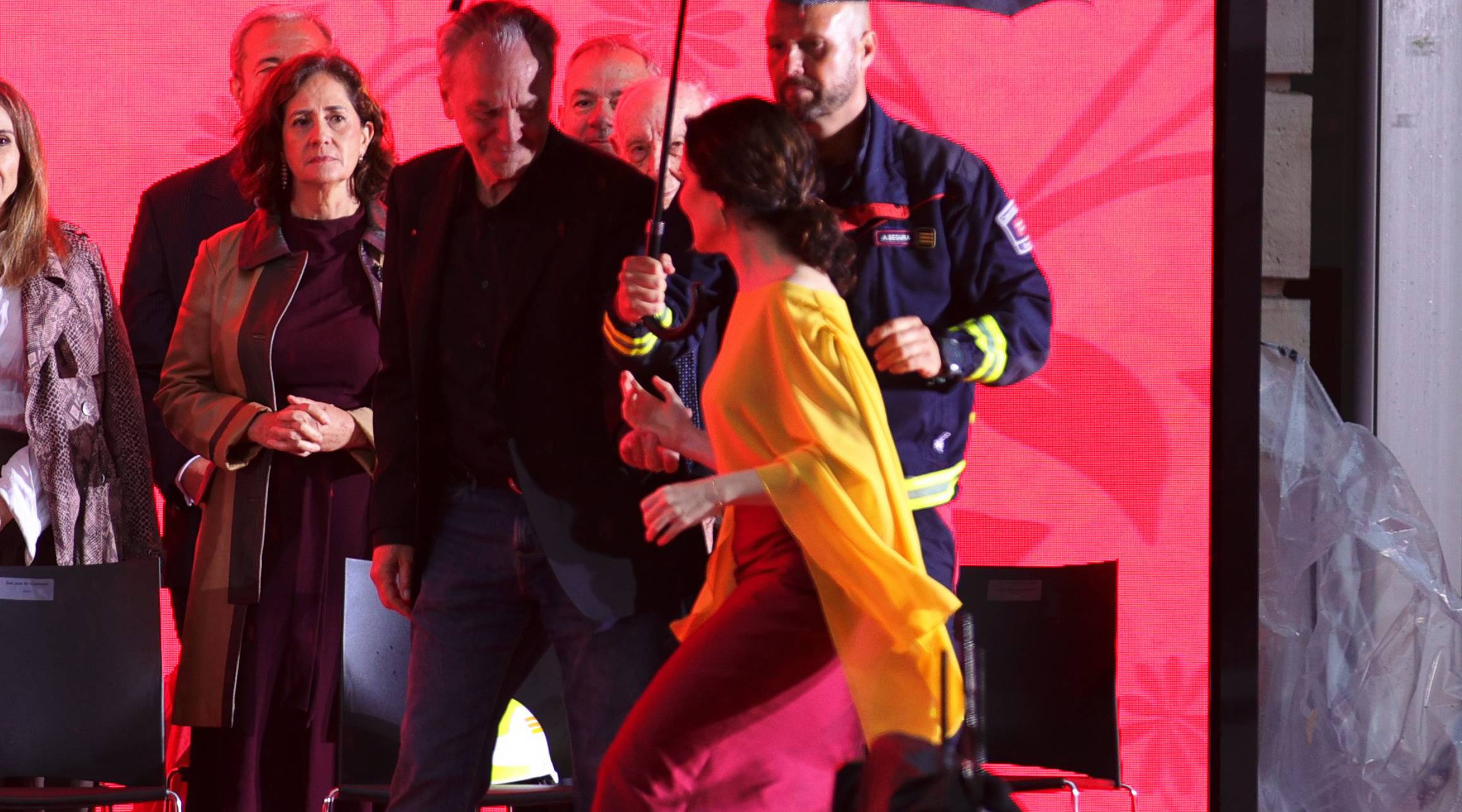 José Coronado ha recibido a Isabel Díaz Ayuso con una gran sonrisa cuando ha subido al escenario donde se han entregado las medallas.