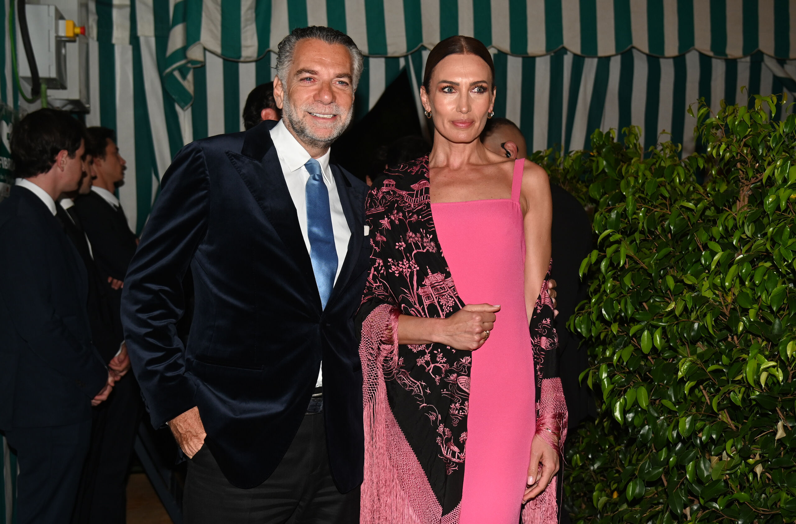 Manuel Díaz, “El Cordobés" y su mujer, Virginia Troconis que ha sido otra de las invitadas en apostar por el blanco y negro, donde destacaba su blusa de volantes en esos colores.