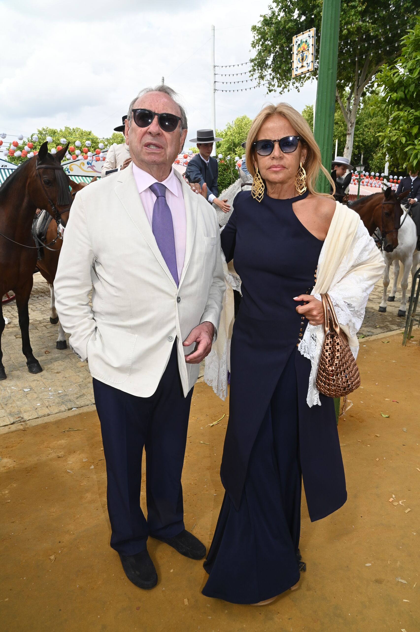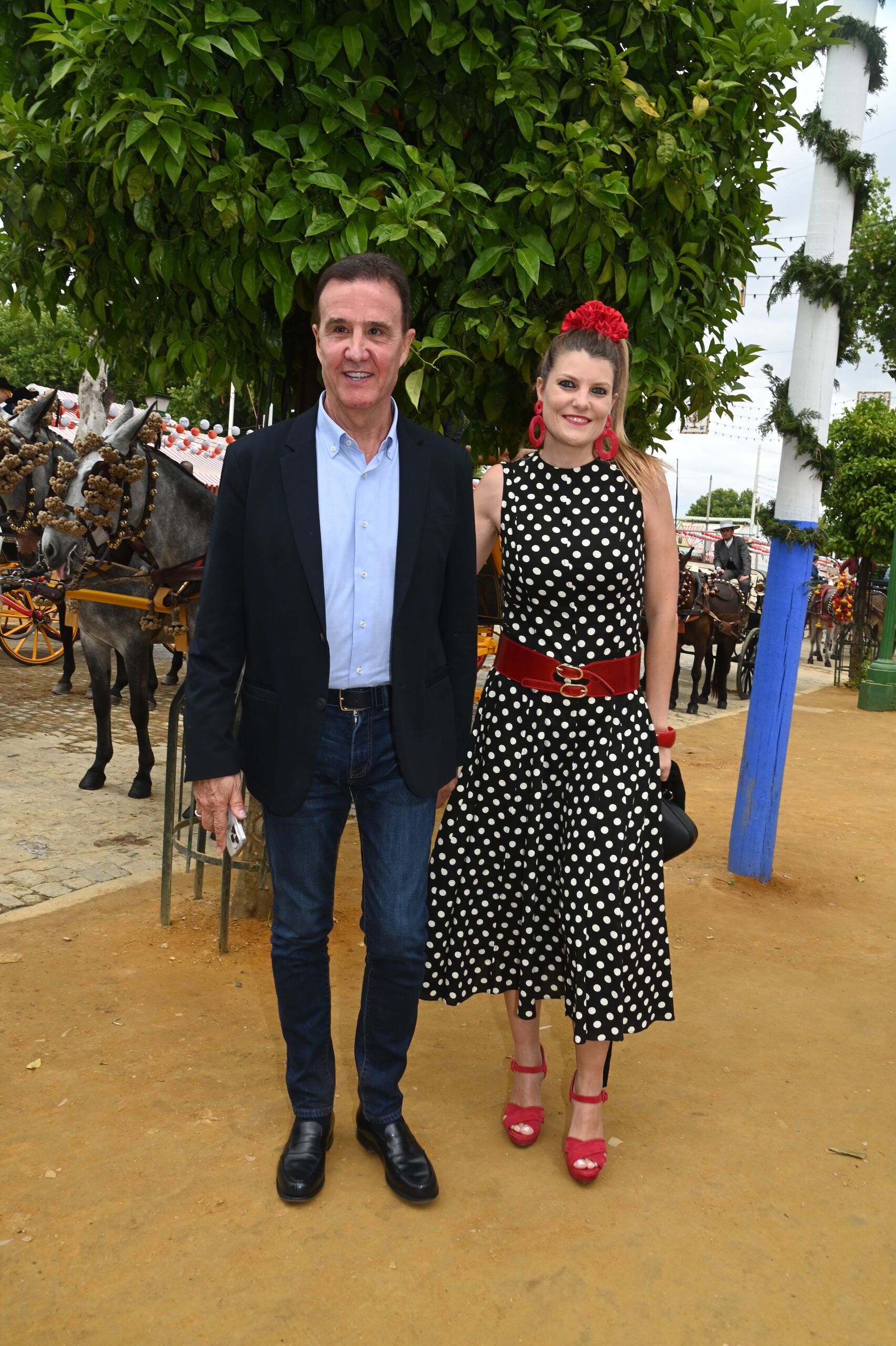 José Ramón de la Morena, acompañado de su mujer Laura Vázquez, que lució un clásico vestido negro de lunares blancos con accesorios rojos.