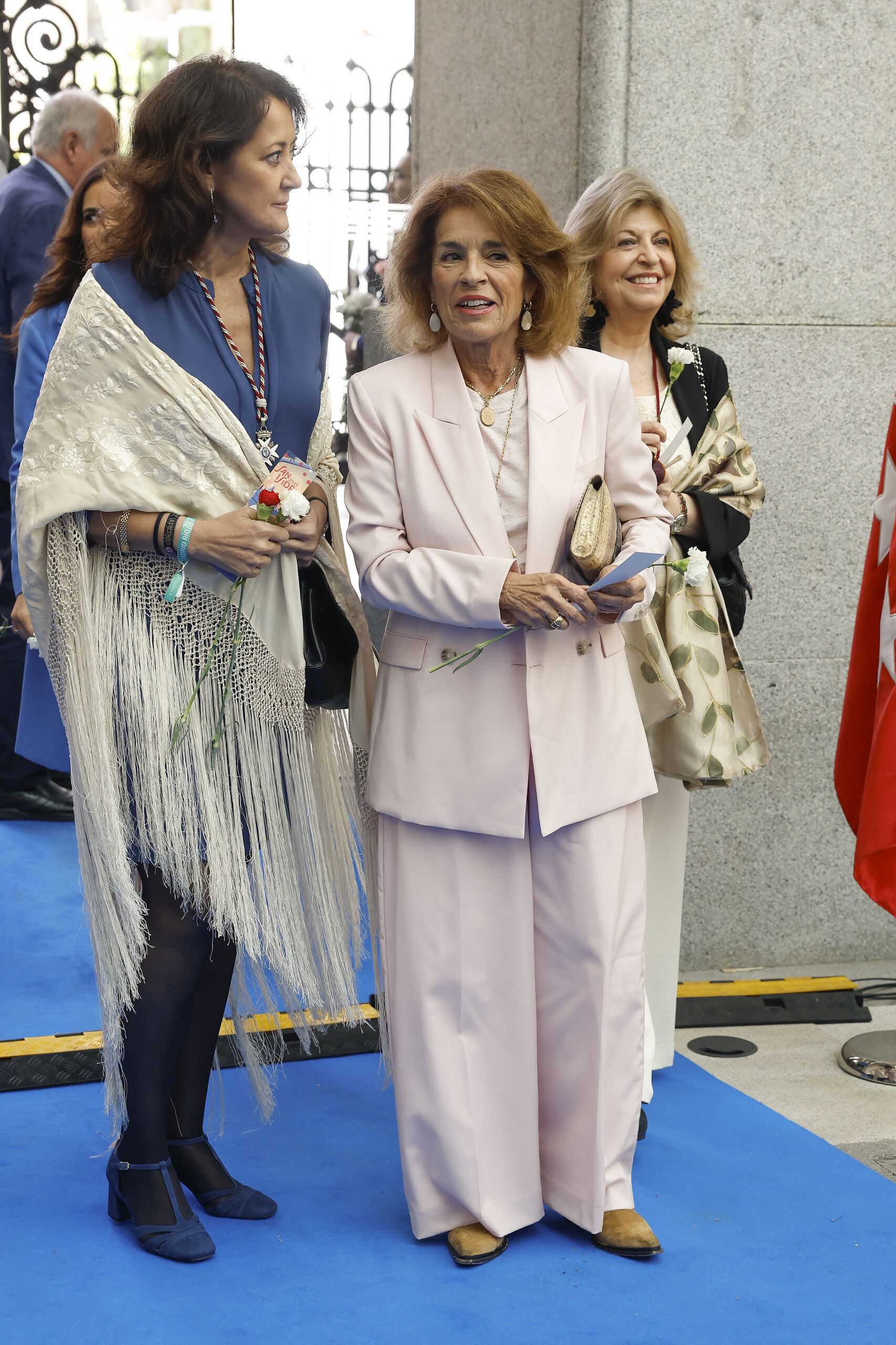 Ana Botella, ha optado por un traje sastre pantalón en color rosa empolvado ideal para el entreteimpo. Ha llegado acompañada de la concejal de Arganzuela, Lola Navarro.