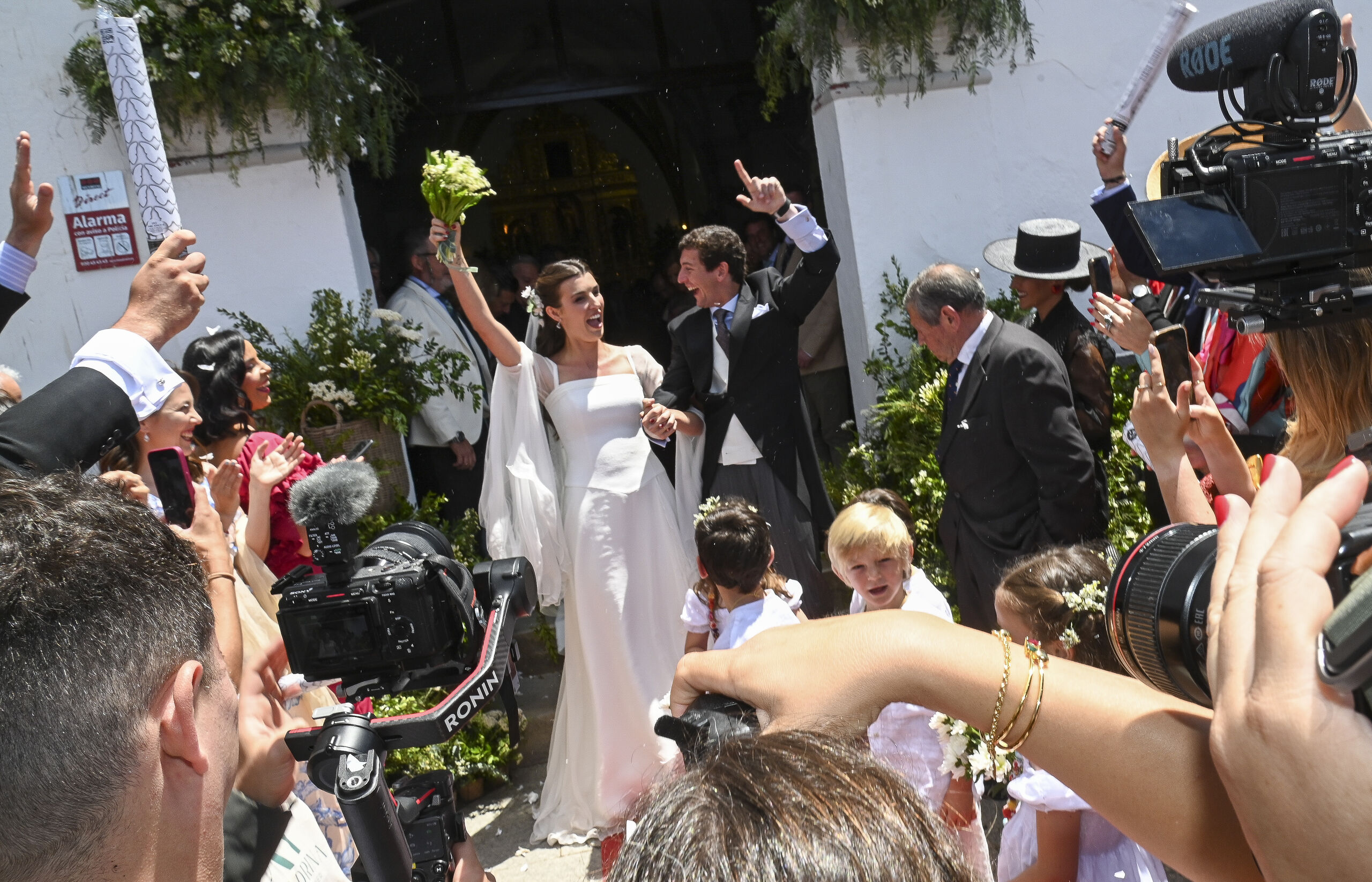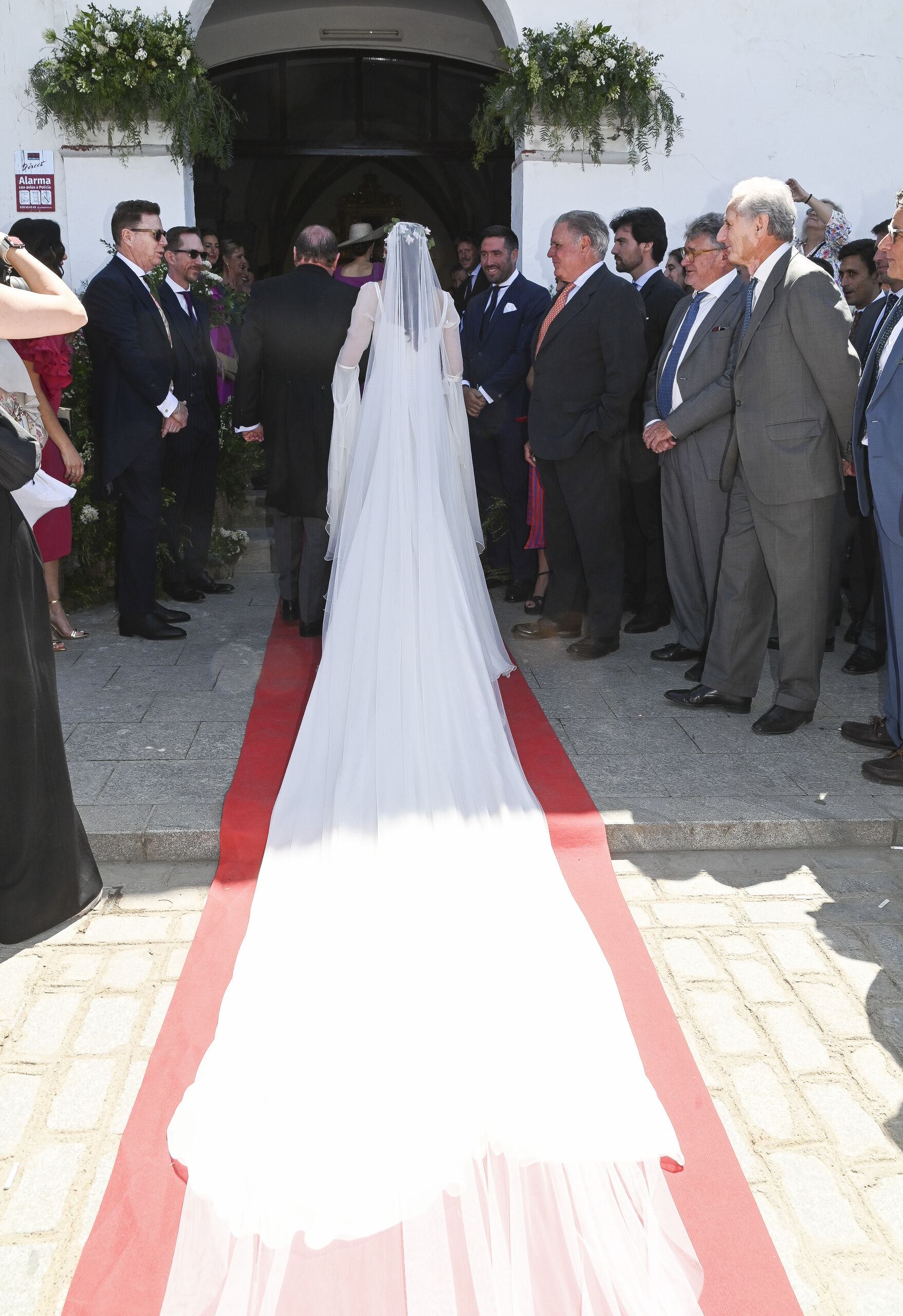 La pareja se ha dado el 'sí quiero' este sábado alrededor de las 12.30h en la iglesia de San Bartolomé, en El Real de la Jara. Esta ubicación tiene un significado especial, ya que su hermana Marta y Jaime Núñez Mendo en el año 2016. El orgulloso padre de la novia ha optado por el tradicional chaqué, al igual que el novio.