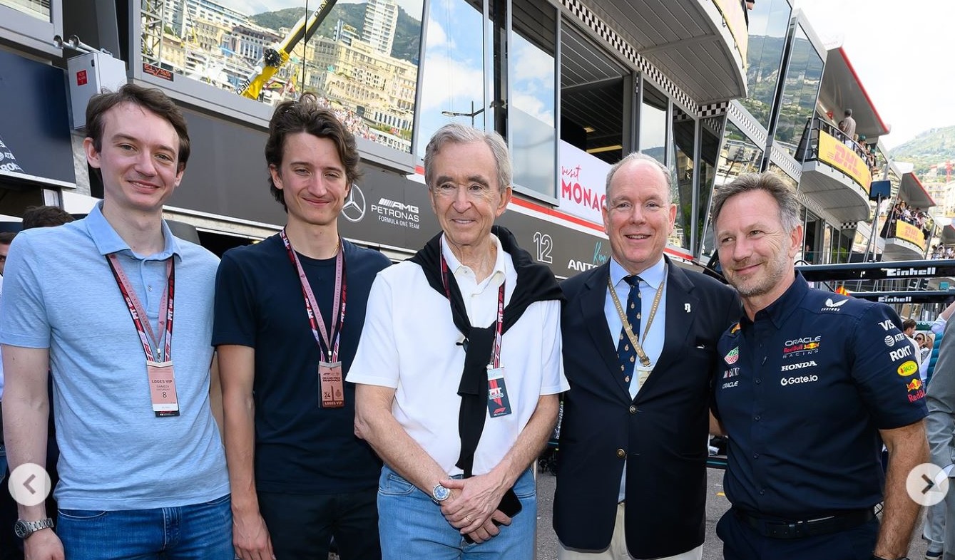 El magnate de LVMH Bernard Arnault ha estado acompañado de sus hijos menores Fréderic y Jean, y han posado con el príncipe Alberto.