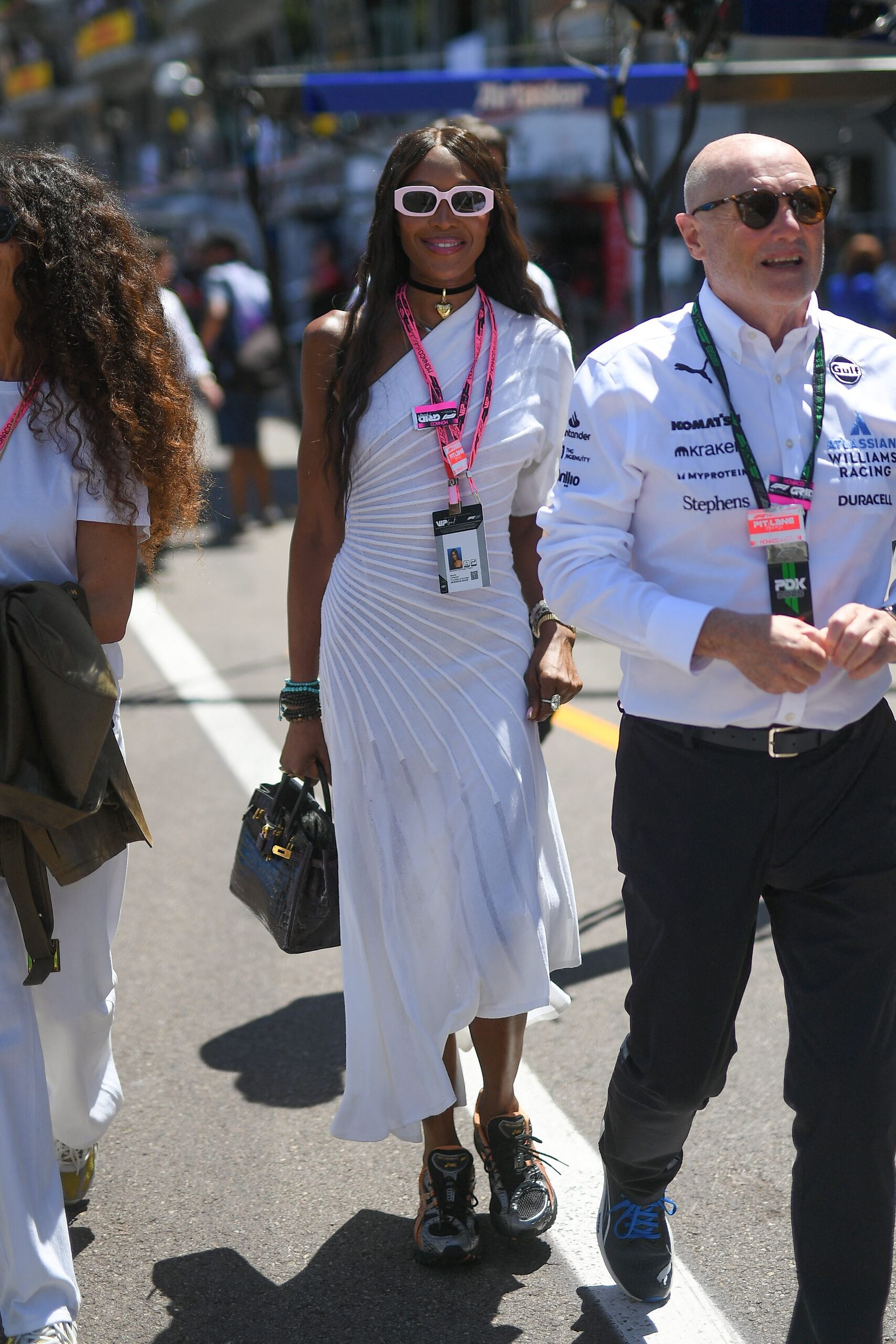 Naomi Campbell a su llegada al paddock del Gran Premio de Mónaco