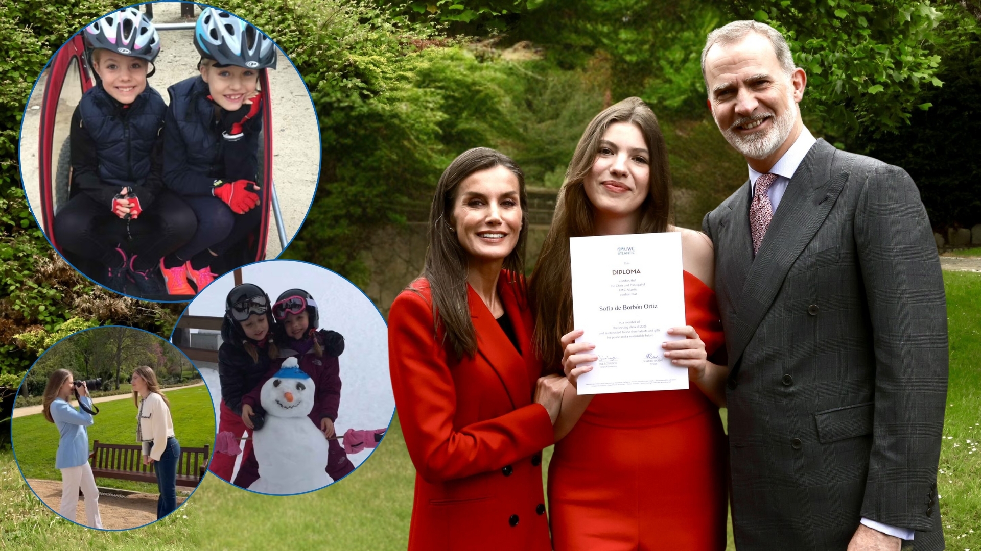 Casa Real se ha volcado este fin de semana con la publicación de imágenes y vídeos de la princesa Leonor y la infanta Sofía con motivo de su graduación en el UWC College de Gales, con varias fotografías de la graduación, entre ellas Felipe VI haciendo fotos a la infanta Sofía, la reina Letizia dándole un achuchón a su hija, o una en la que Sofía y sus padres miran el teléfono móvil durante una posible vídeo llamada con Leonor.