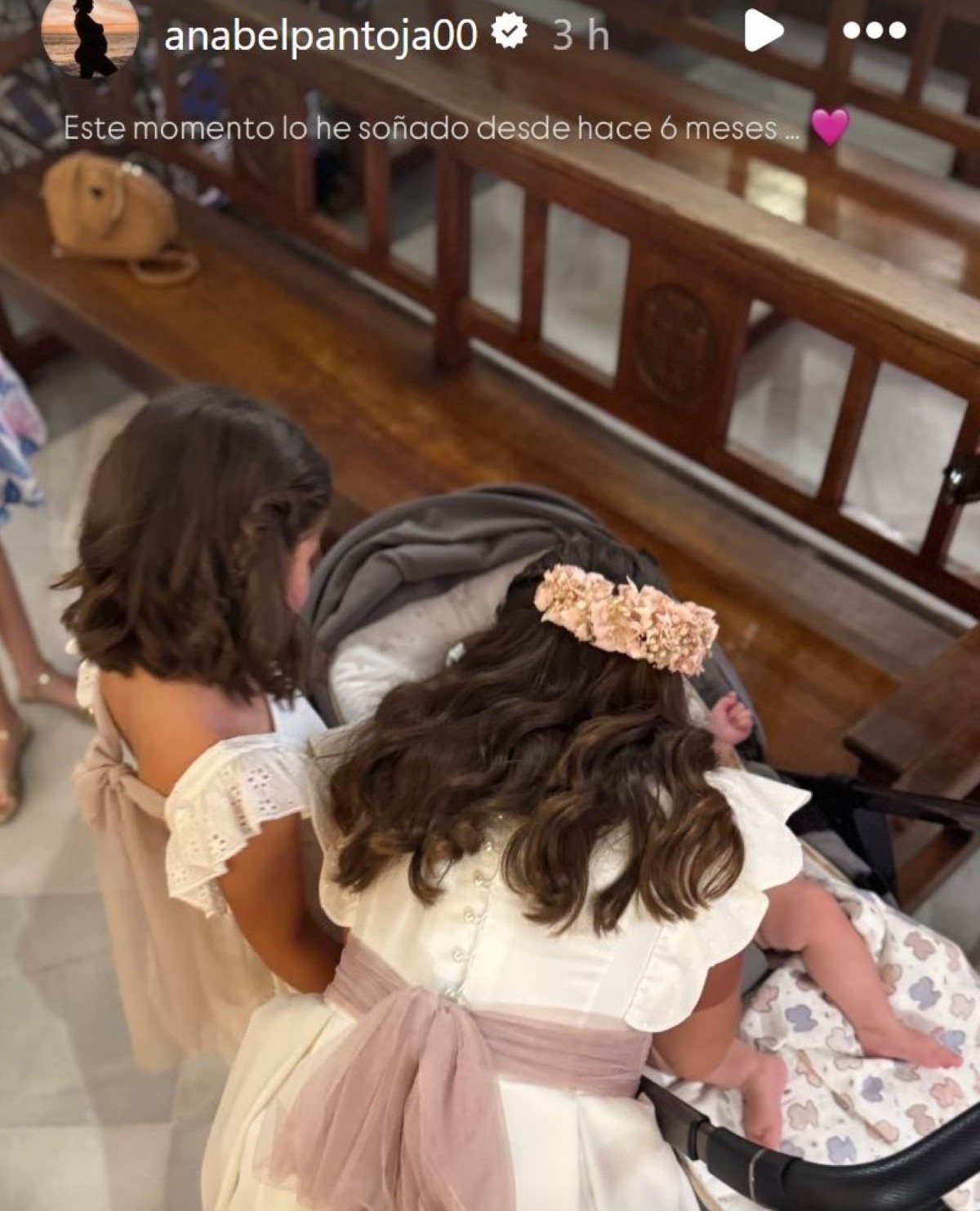 Quién no se ha perdido este evento ha sido Anabel Pantoja, que aunque ha llegado tarde a la ceremonia, ha acudido junto a su pareja, David Rodríguez, su hija, Alma, y su madre, Merchi Bernal. Anabel, además, no ha dudado en inmortalizar el encuentro de su hija Alma con las hijas de su primo, que ha compartido en sus redes sociales con el mensaje "Este momento lo he soñado desde hace 6 meses".