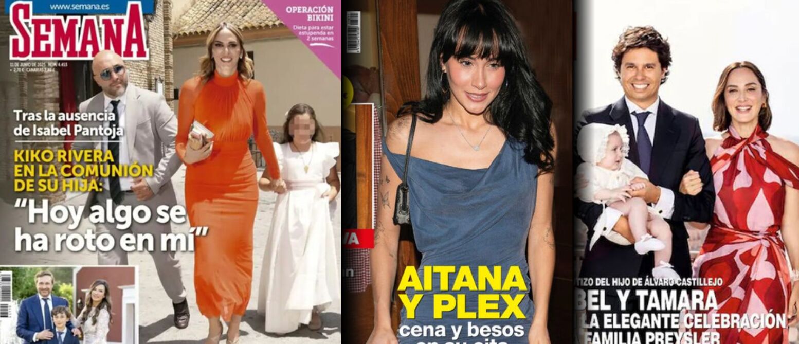 Preysler celebra desde la portada de Hola el bautizo de su sobrino-nieto, el hijo de Álvaro Castillejo. La revista publica en exclusiva imágenes del último evento que ha reunido a la familia y en el que parece que las invitadas se ponen de acuerdo en cuanto a qué colores vestir para quedar mejor en las fotos. Isabel, Tamara y Álvaro posan con el bebé en la portada. Íñigo queda relegado a páginas interiores.