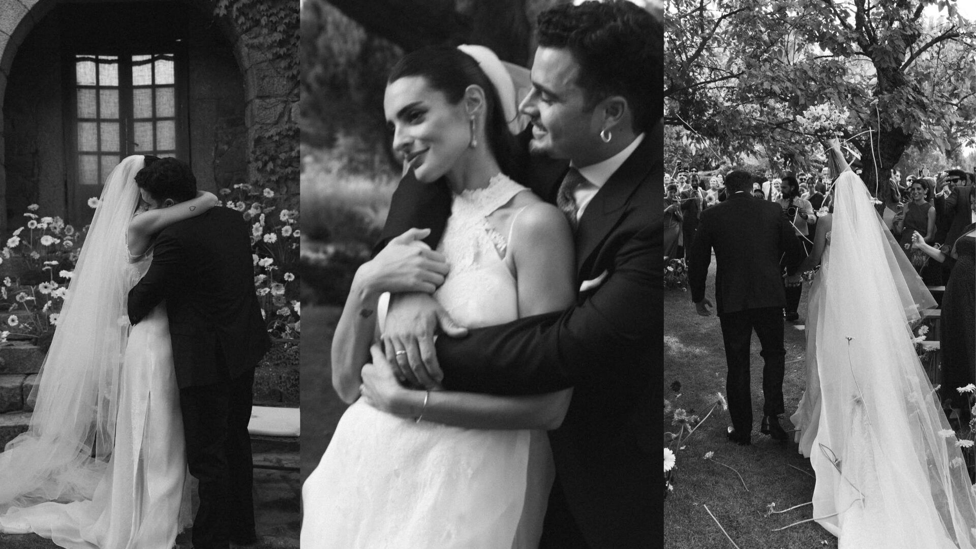 Uno de los aspectos más comentados de cualquier boda es el look de la novia, y Susana no decepcionó. Lució un vestido desmontable con base de crepé de seda, escote en V, tirantes finos y una túnica de organza bordada en chantilly francés, acompañado de un clásico velo de tul. Completó su look con unos zapatos metalizados de punta cuadrada de Uniq Shoes. Ella misma se mostró especialmente satisfecha con su elección de calzado: un modelo de tacón ancho, ideal para caminar sobre césped. Aun así, reconoce que se los cambió al final por puro "capricho".