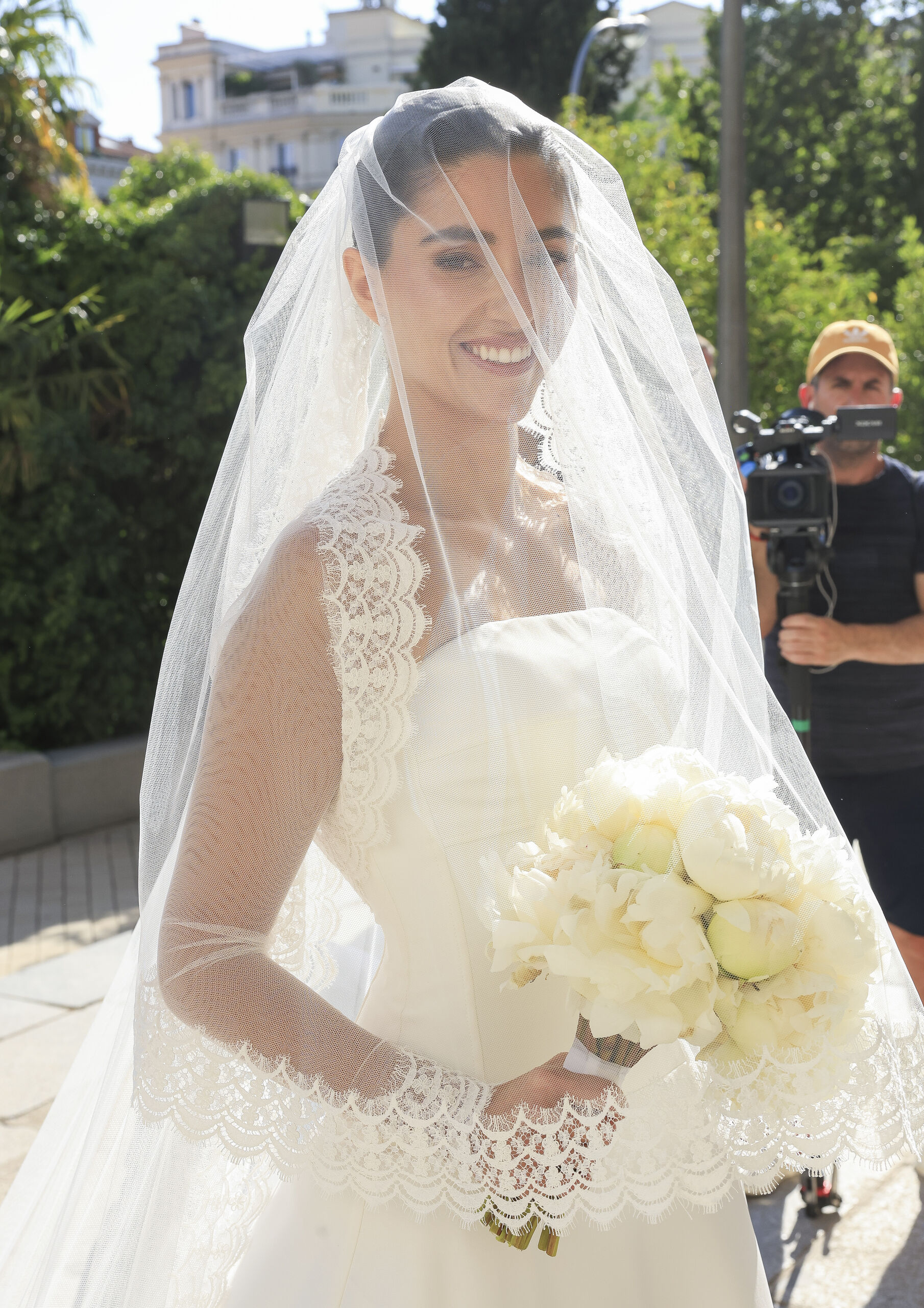 En sus manos ha lucido un bonito ramo de peonías, y como joyas ha elegido unos pendientes con pequeños diamantes. Para su cabello, Carla ha elegido un sencillo moño estilo bailarina.