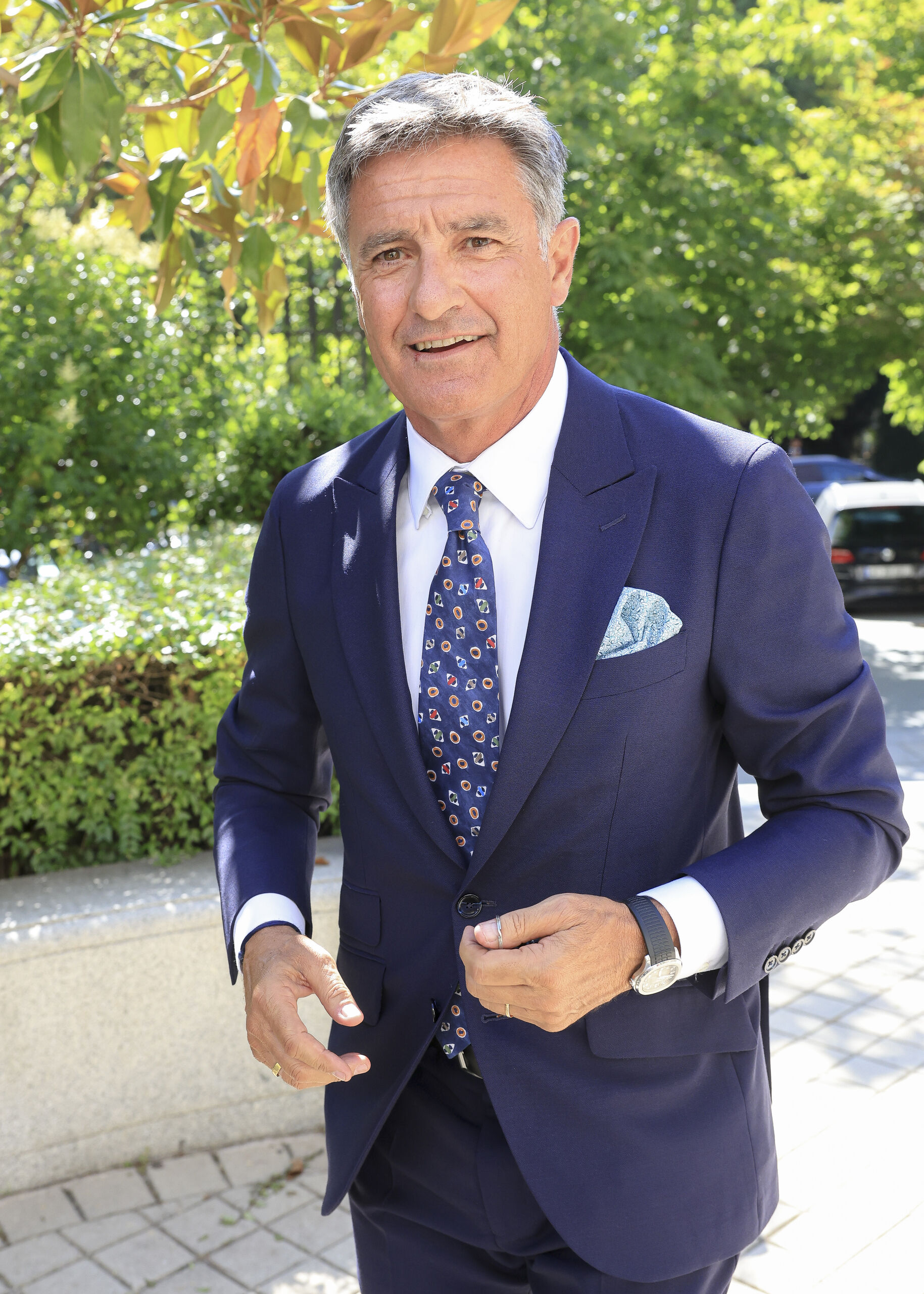 Míchel González, el orgulloso padre del novio, que saludó a la prensa y confesó estar “emocionado y nervioso" antes de la ceremonia.
