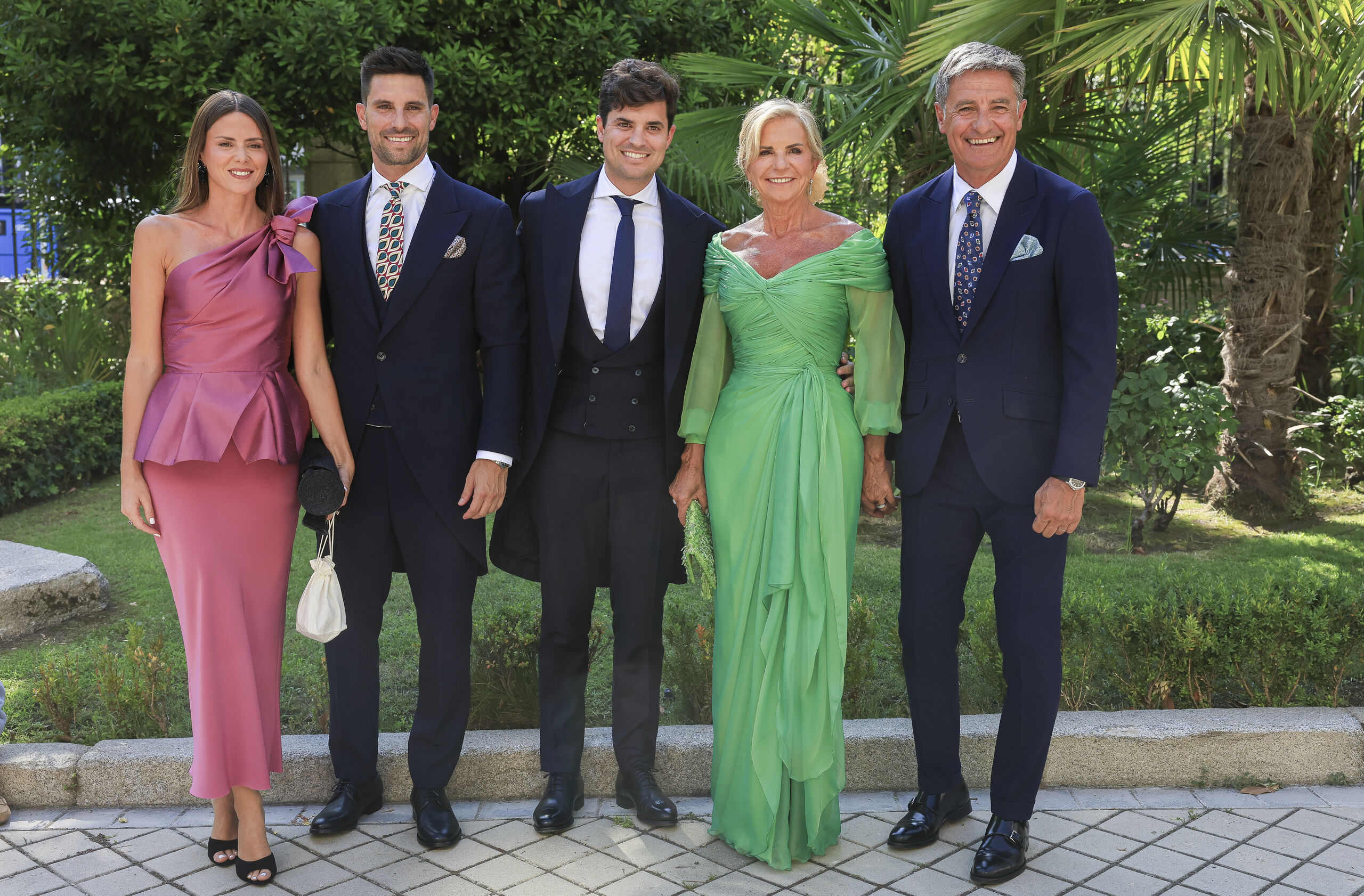 El novio Álvaro González junto a sus padres Michel González y Merche Luengo y su hermano mayor Adrián González junto a su mujer la influencer Natalia Coll.