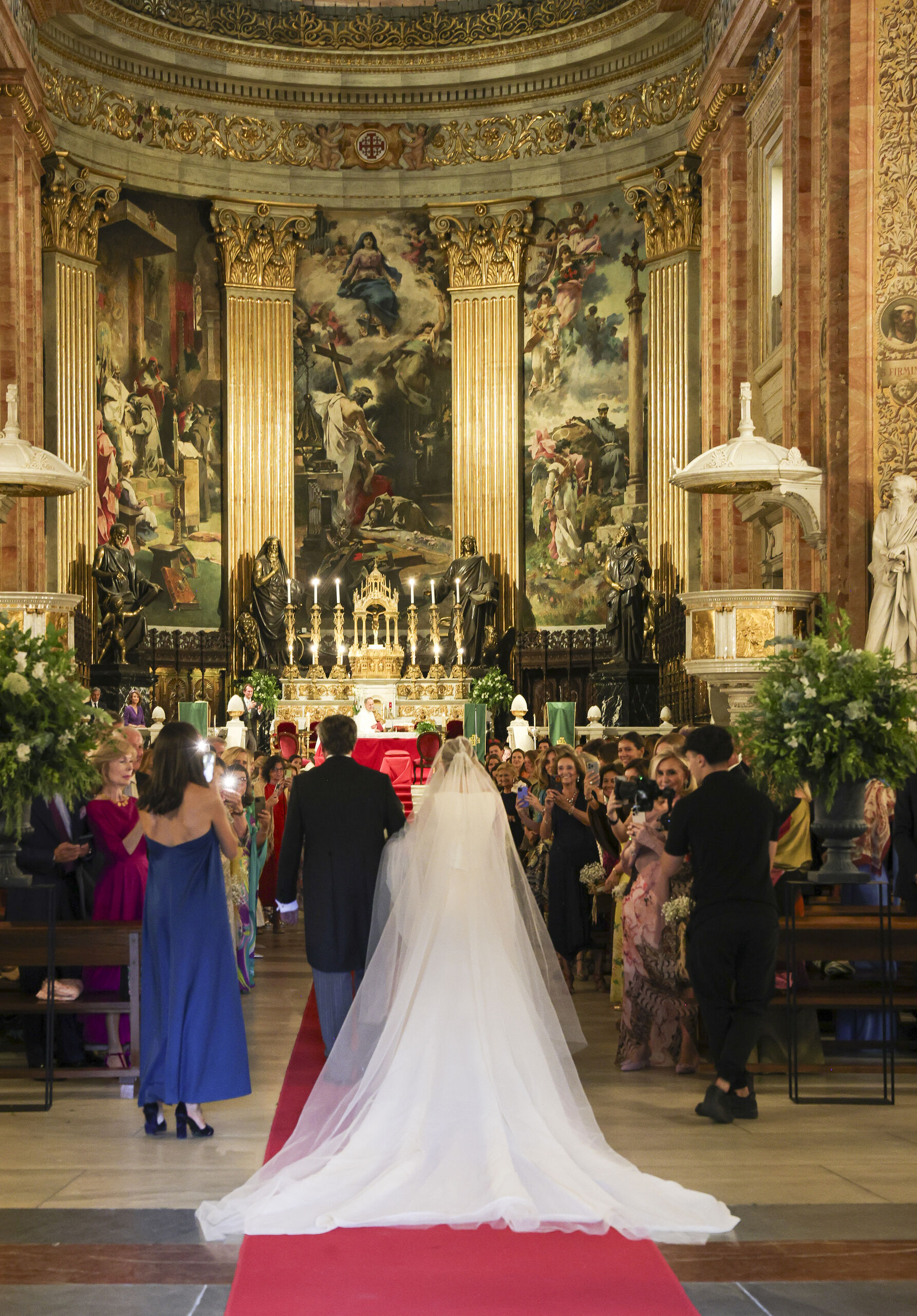 Los novios se dieron el ‘sí quiero’ en la iglesia Real Basílica de San Francisco el Grande de Madrid después de cinco años de relación. Un templo próximo al Palacio Real y a la catedral de la Almudena donde además, se casó su abuela, lo que convirtió la ceremonia en una emotivo gesto para su familia, tal y como ella misma desveló al a prensa durante la preboda, que tuvo lugar el día anterior a la revista Hola.