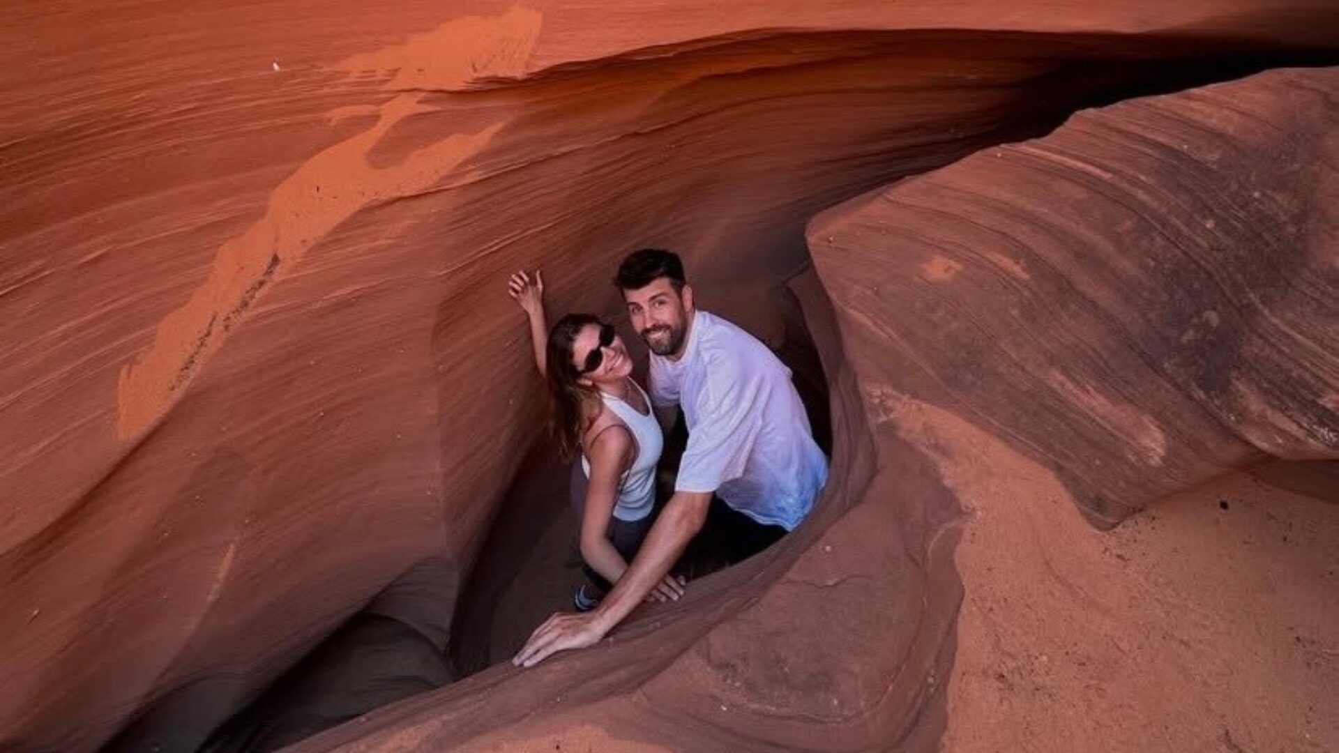 La pareja se ha ido de viaje nada más y nada menos que a Estados Unidos, concretamente a la zona del Gran Cañón y el desierto de Utah, donde les hemos podido ver rodeados de los inmensos paisajes de piedra rojiza característicos del lugar. En las imágenes se muestran cercanos, compartiendo sonrisas y miradas cómplices, y no han ido solos, en una de ellas se ve como se están bañando en un precioso lago con la compañía de dos amigos más.