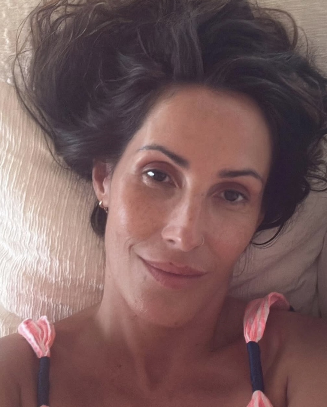 En la imagen se muestra sin una gota de maquillaje, con la piel al natural, dejando ver sus pecas, pequeñas arrugas y ojeras.