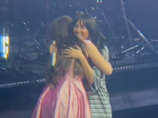 Ambas artistas, visiblemente emocionadas, se fundieron en varios abrazos durante la interpretación, mientras bailaban con entusiasmo una coreografía que desprendía complicidad, alegría y una nostalgia palpable. Era evidente que ese momento era tan especial para ellas como para quienes lo presenciaban.