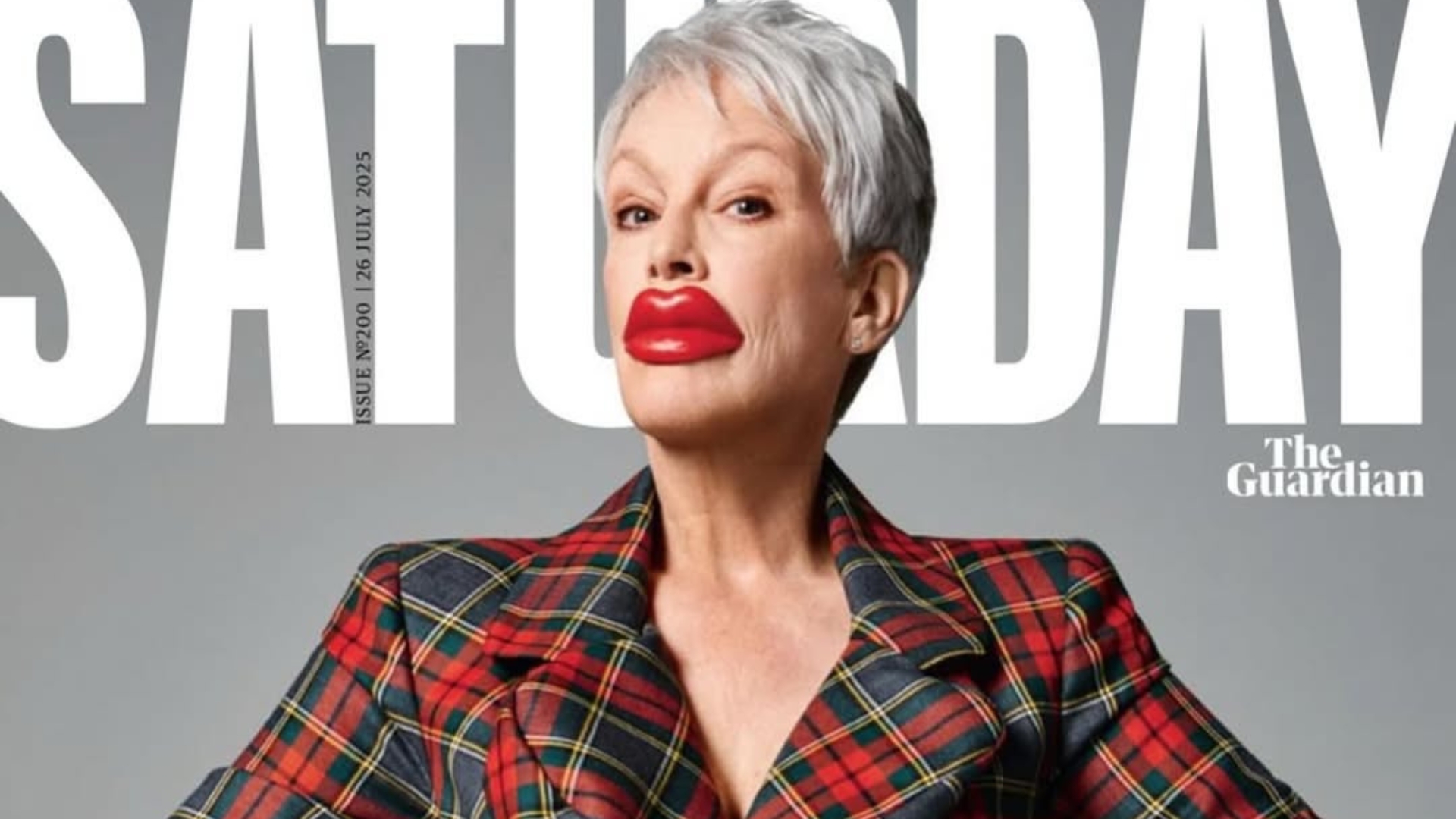 Esta vez, el motivo tiene que ver con su última portada en la revista británica Saturday de The Guardian. En ella aparece con unos labios de cera rojos completamente deformados y desproporcionados, "es mi declaración contra la cirugía estética", afirmaba, "he hablado mucho del genocidio de una generación de mujeres por el complejo industrial cosmecéutico, que se han desfigurado a sí mismas. Los labios de cera lo demuestran", explicaba en la extensa entrevista concedida al medio.