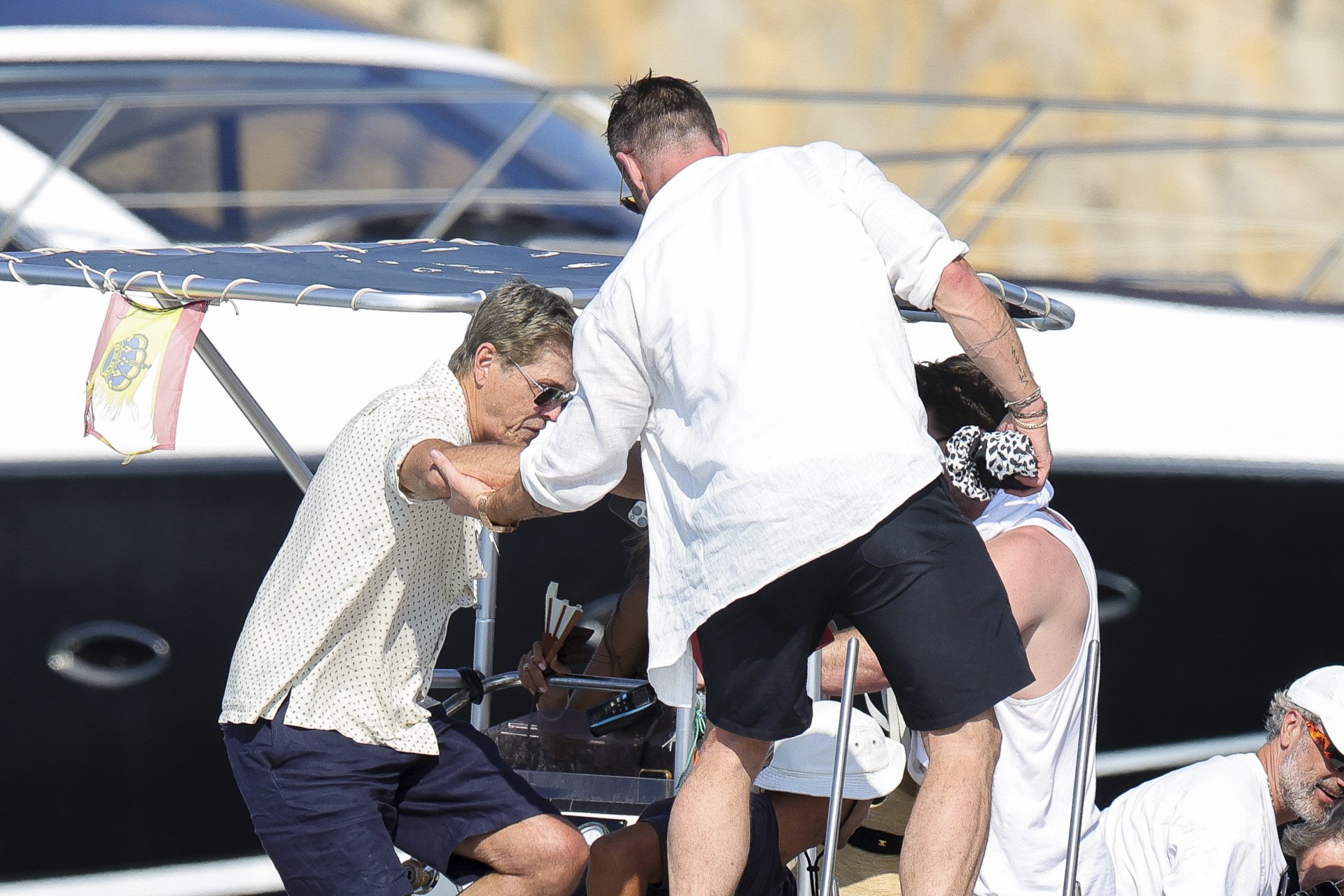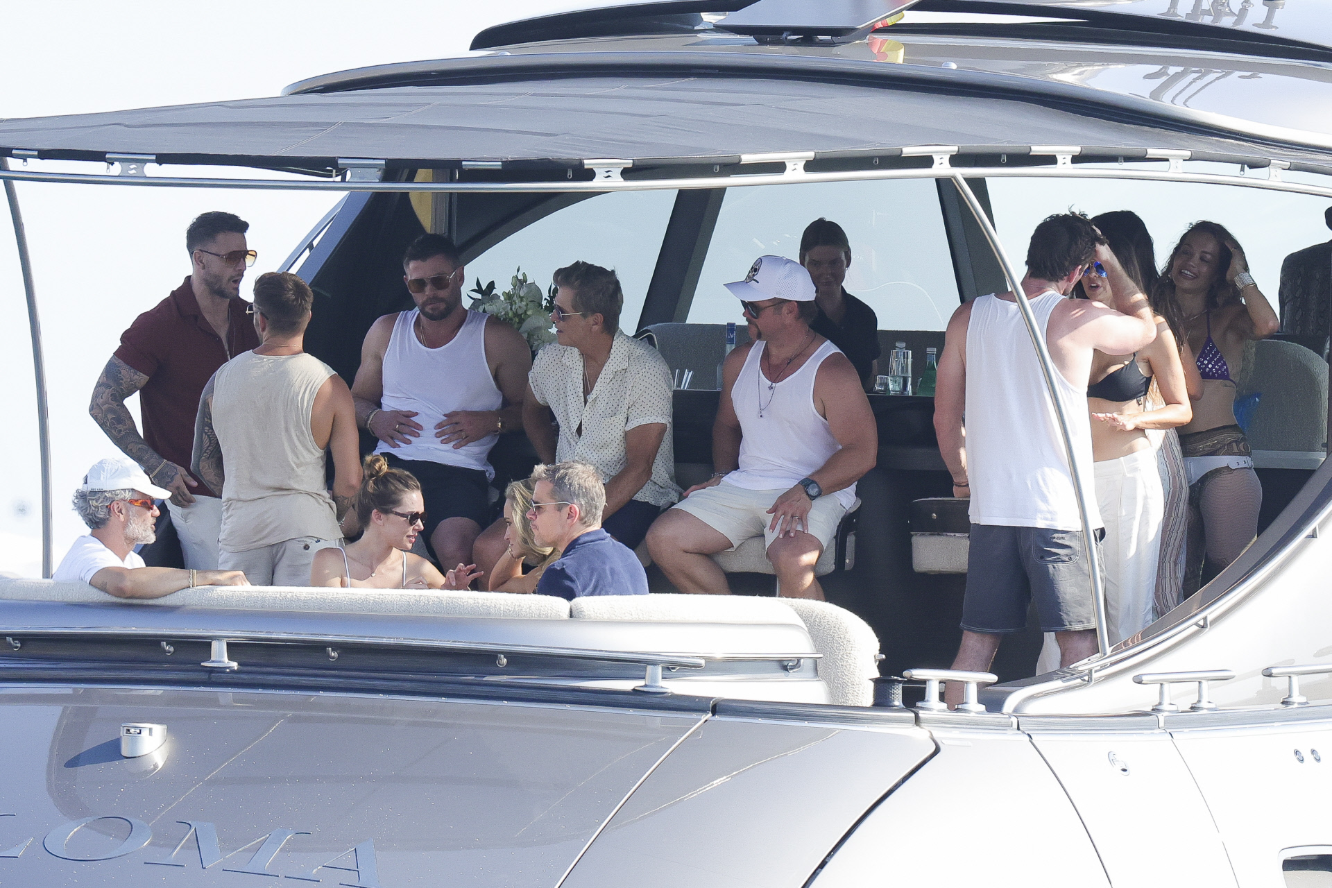 Chris Hemsworth junto a sus amigos hablando en el yate de Ibiza.