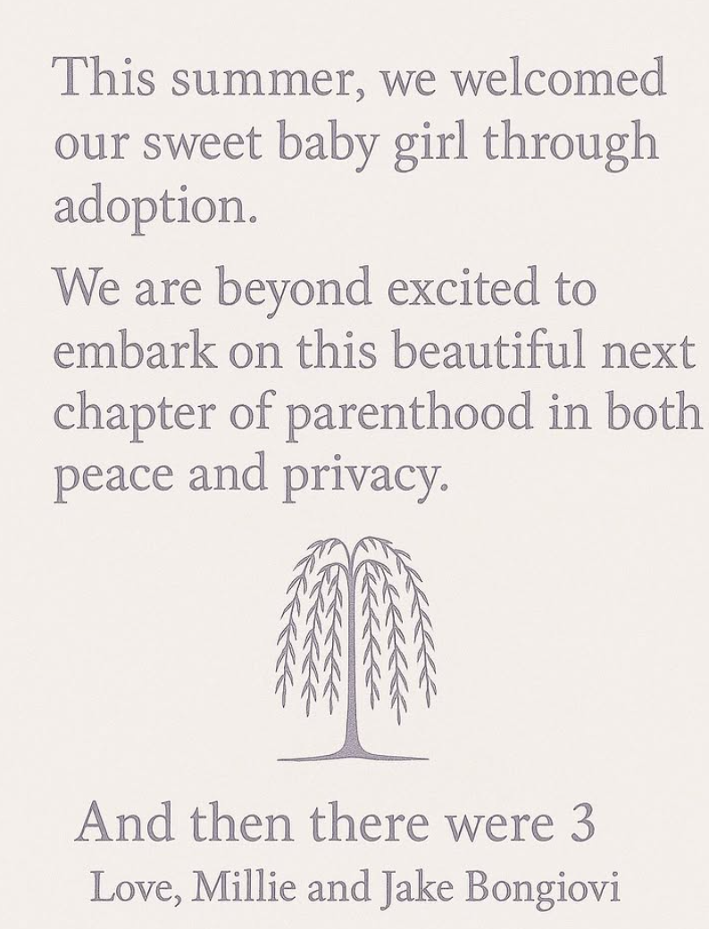 La actriz Millie Bobby Brown y su marido Jake Bongiovi han sorprendido a sus seguidores al anunciar que se han convertido en padres este verano tras adoptar a una niña. La noticia fue confirmada por la propia pareja a través de un comunicado en sus redes sociales, donde han pedido respeto y privacidad para disfrutar de esta nueva etapa lejos de los focos.