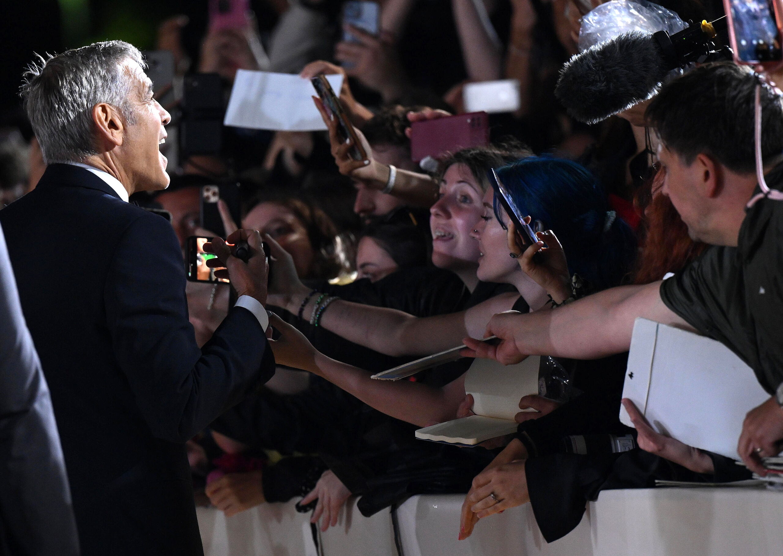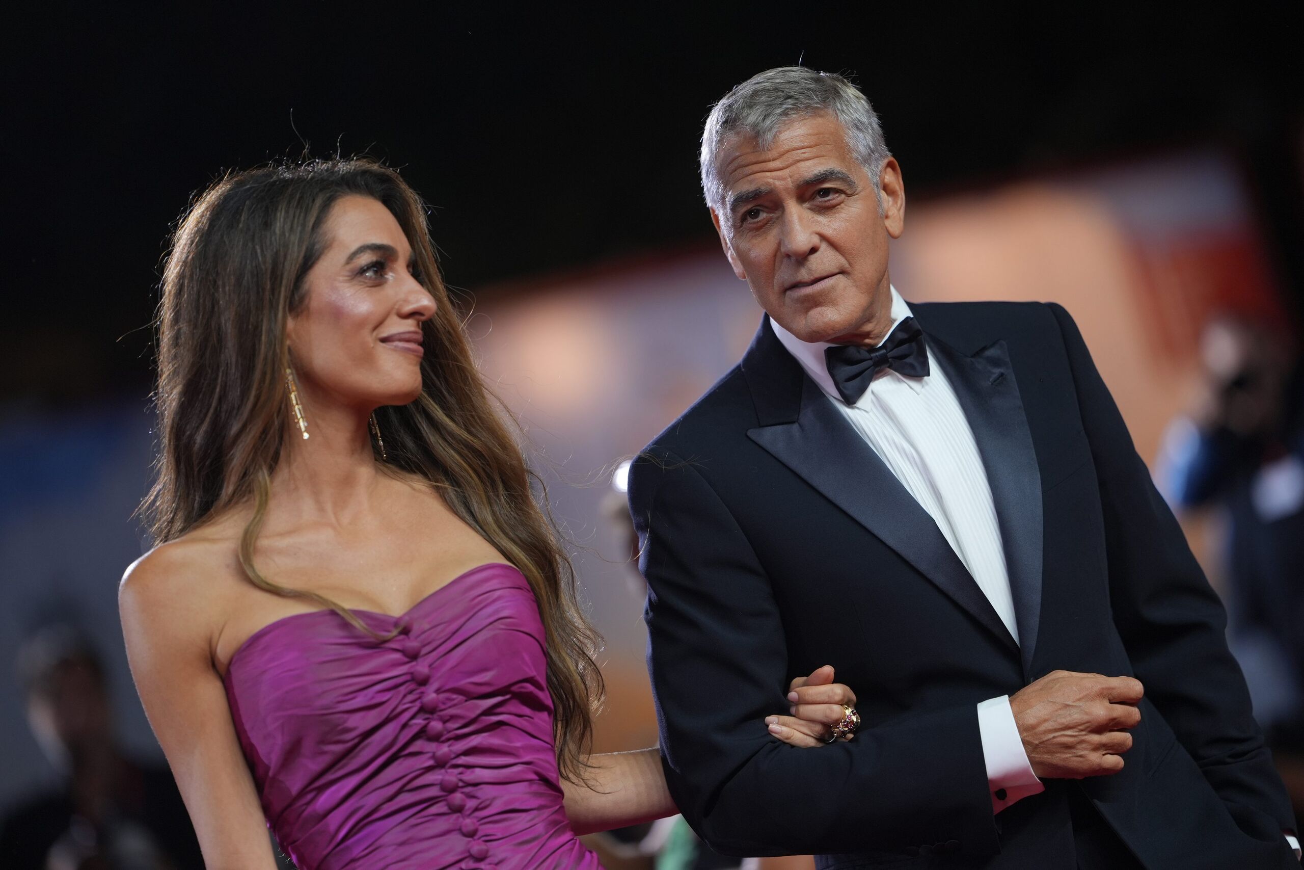 El actor y la abogada acapararon las miradas y dejaron románticas imágenes en la presentación de su nueva película, 'Jay Kelly', en el festival de cine.