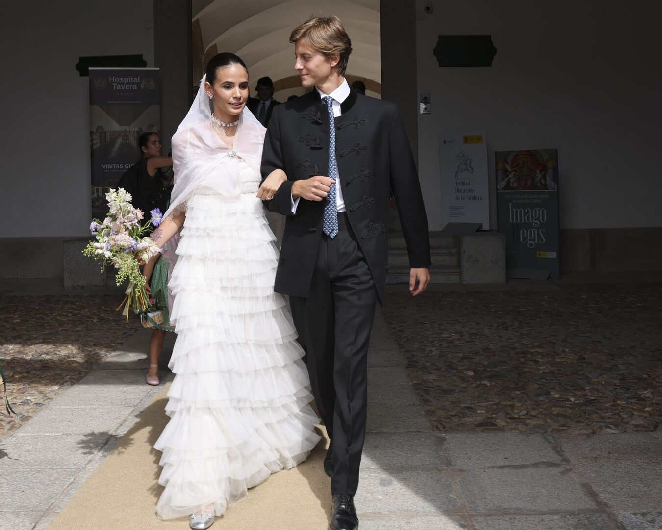 Tras convertirse en marido y mujer, han salido de la iglesia entre aplausos, visiblemente emocionados y felices. La pareja se ha subido a un Alfa Romeo vintage y se han dirigido a la finca Estiviel, propiedad del padre de la novia, ubicada en la provincia de Toledo, junto al resto de invitados, donde ha tenido lugar el banquete.
