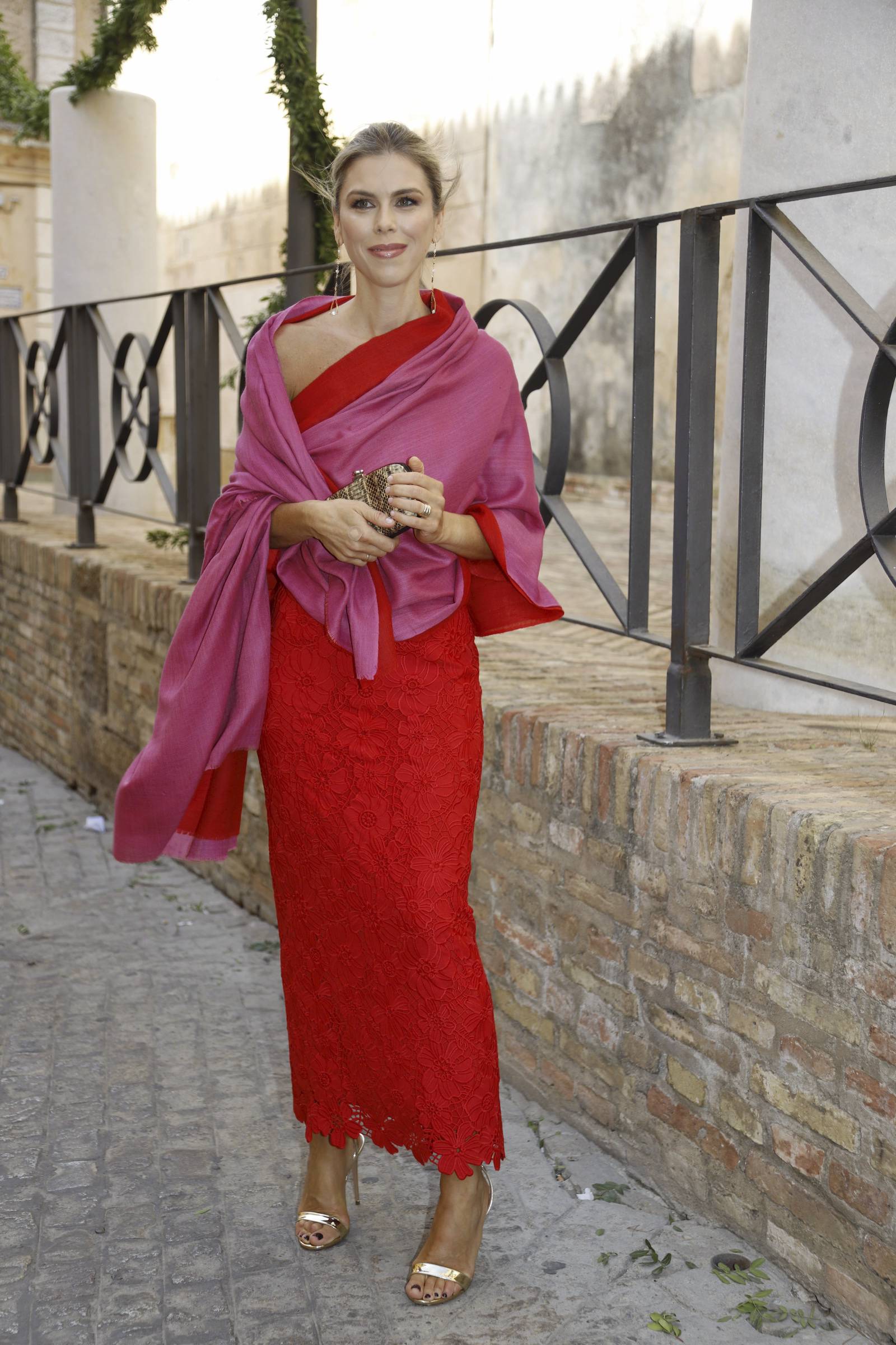 Entre los asistentes, ha destacado la presencia de Manuela Villena, esposa del presidente de la Junta de Andalucía, quien ha sido una de las invitadas más elegantes con un vestido hecho a medida por Nicolás Montenegro en rojo, de escote palabra de honor y silueta, que ha combinado con pendientes de Suma Cruz, chal en rosa y rojo de Again Cashmere, y sandalias doradas de tacón.