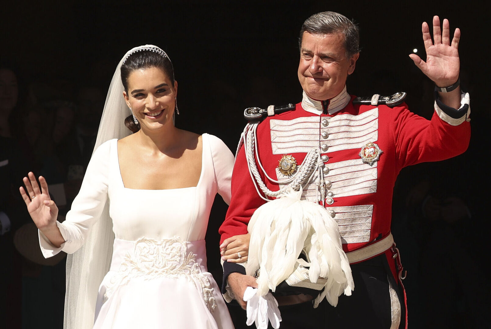 Me ha parecido una novia muy guapa. El traje de Navascués que tanto se ha hablado, me ha parecido que ha sido todo un acierto por su elegancia y su sencillez. El detalle de la cabeza a modo de diadema, me ha parecido todo un acierto. Del novio lo que puedo decir es que ha vuelto a lucir el uniforme, que no traje como se ha dicho en diferentes medios, era el uniforme de maestrante. Que el novio vuelva a lucir el uniforme en su segundo matrimonio, me ha parecido todo un acierto, ya que es un privilegio que se luce en ocasiones especiales y momentos importantes, como ya hizo cuando fue padrino de la boda de su hermana Eugenia.