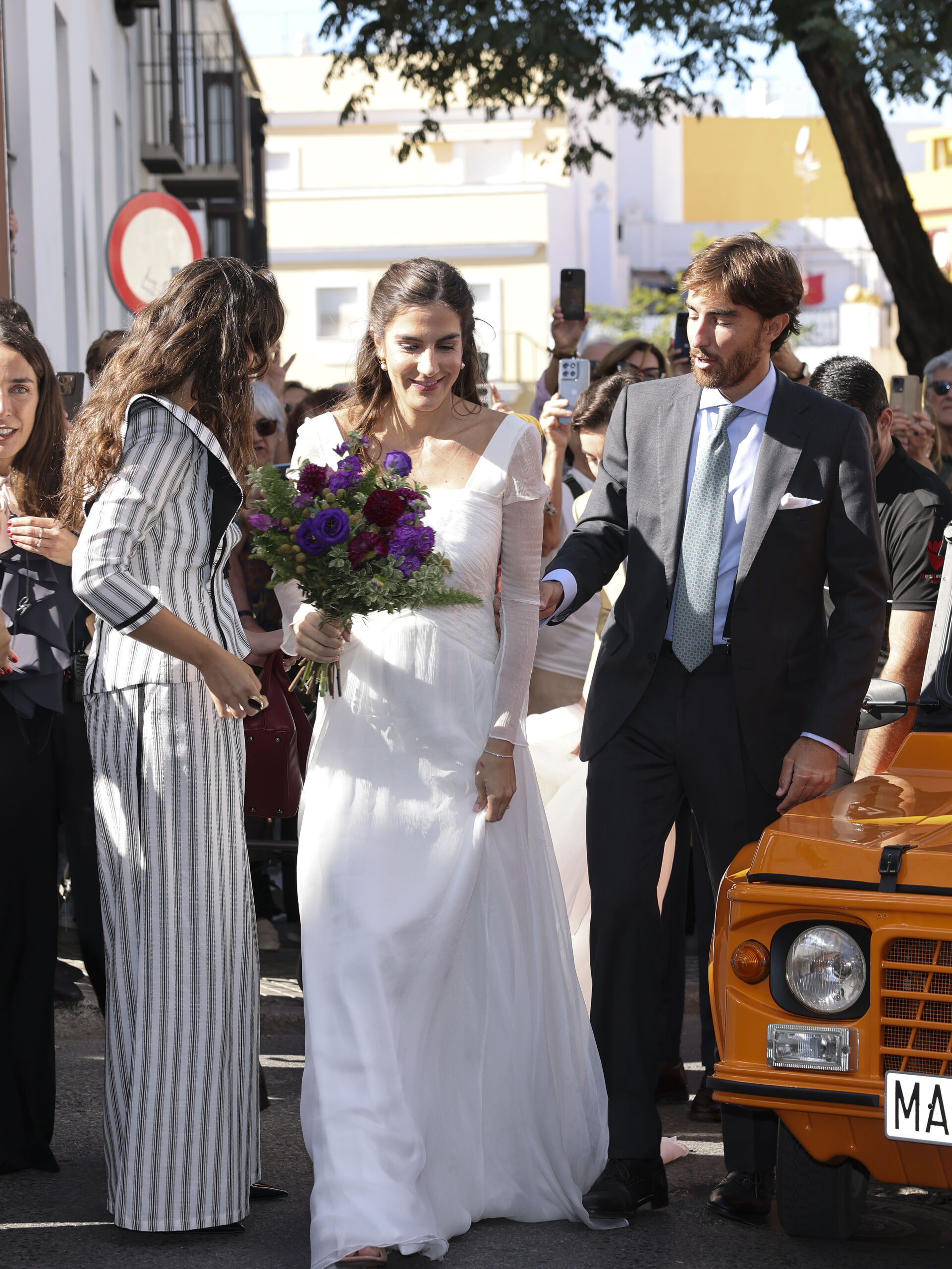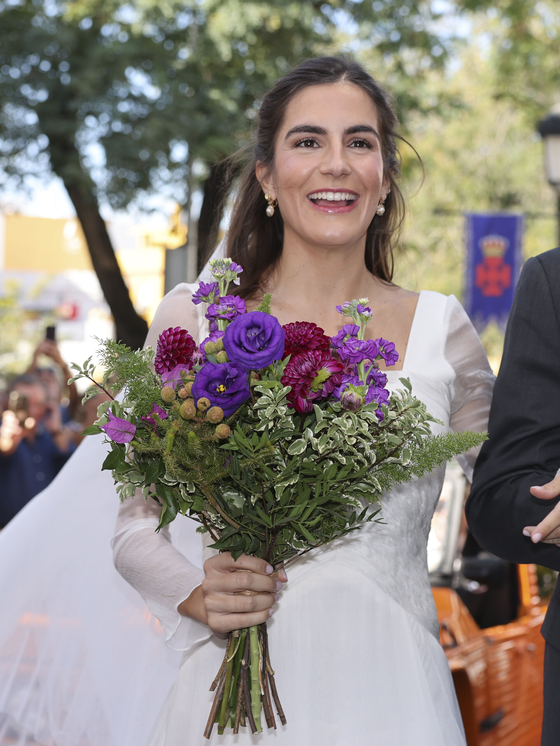 La novia ha confiado para este gran día en el diseñador sevillano Nicolás Montenegro con un vestido que se adapta a la perfección a la silueta de embarazada y ha contado con la colaboración especial de su cuñada, Rocío Crusset.