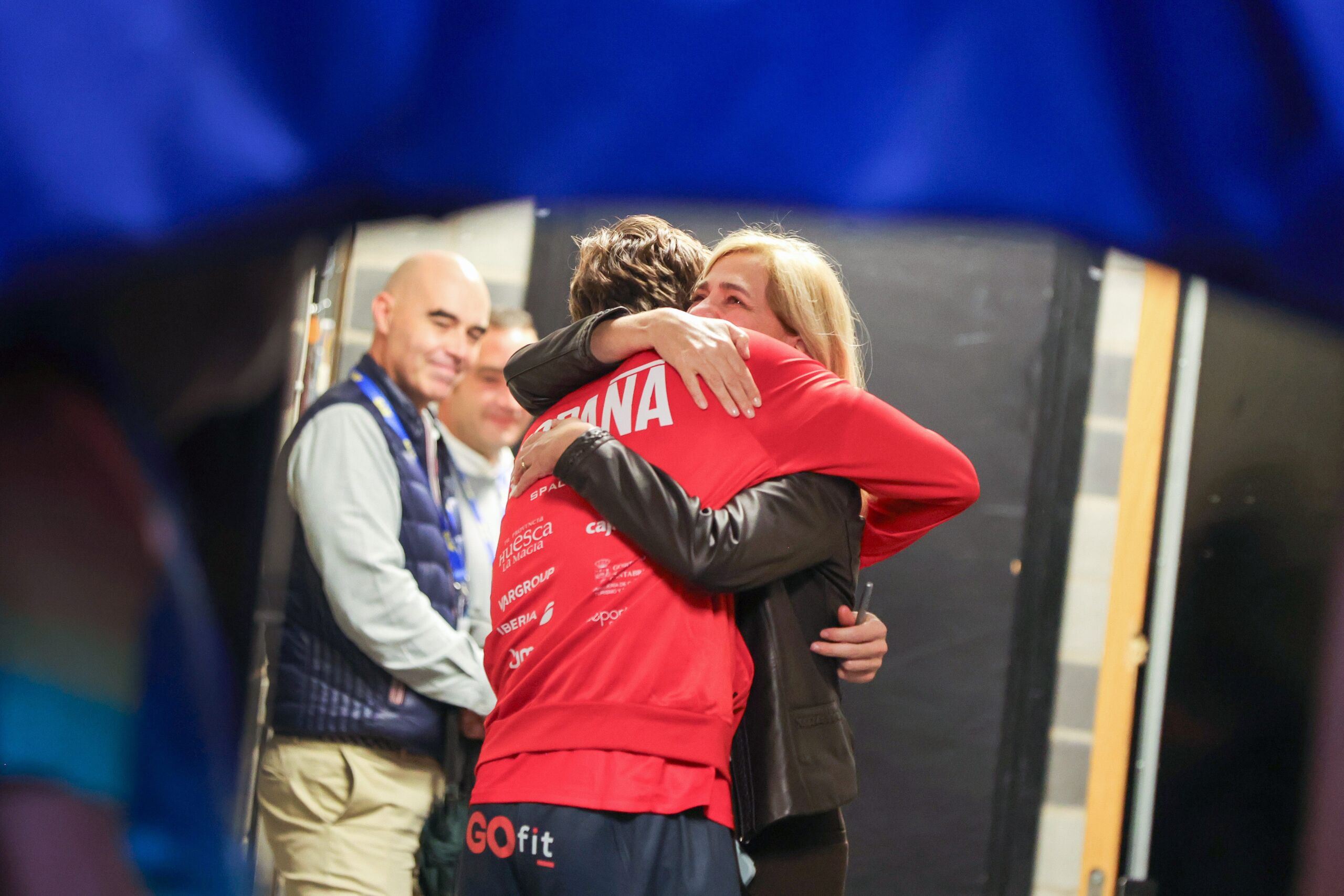 Después de que sonara el pitido que anuncia el fin del encuentro, la infanta no perdió ni un minuto para bajar del palco y abrazar a su hijo, que no podía estar más feliz por el estreno tan brillante que ha tenido, además del gran paso que supone para su carrera estar entre los Hispanos.