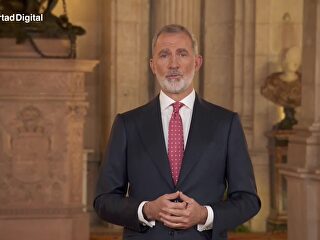 El discurso de Felipe VI, más institucional y menos emotivo que en años anteriores y de nueve minutos de duración, se ha celebrado en el Salón de Columnas del Palacio Real. Además del árbol de Navidad, había también un pequeño Belén que se conserva en el Monasterio de las Descalzas Reales. No hemos visto fotos de sus hijas ni de la reina; solo en la alusión final y en un vídeo posterior a la grabación se vieron distintos momentos de los viajes protagonizados por los cuatro durante este año. Y sin mención a su padre.