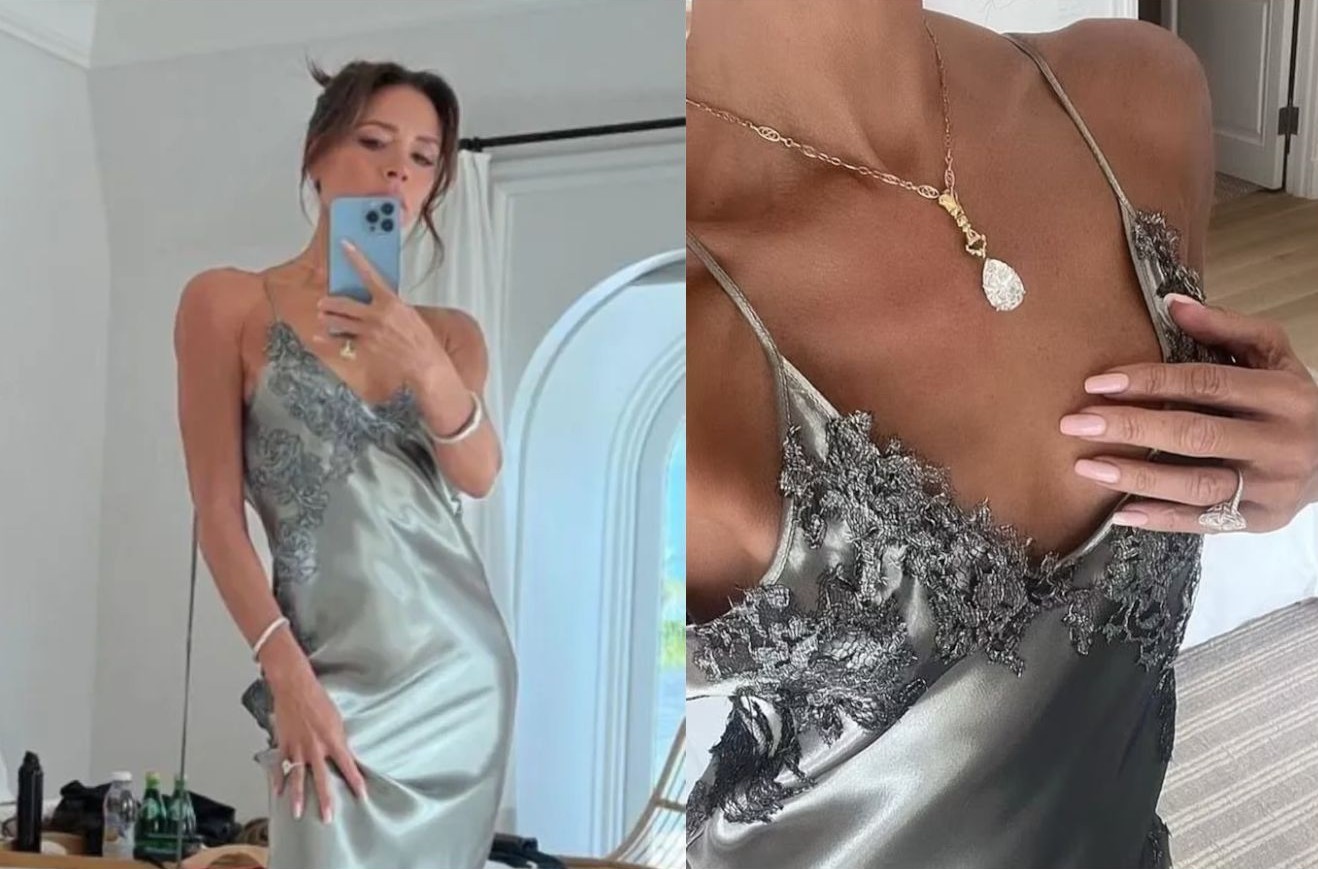 This is the lingerie, slip- like dress Victoria wore to her SON’S WEDDING